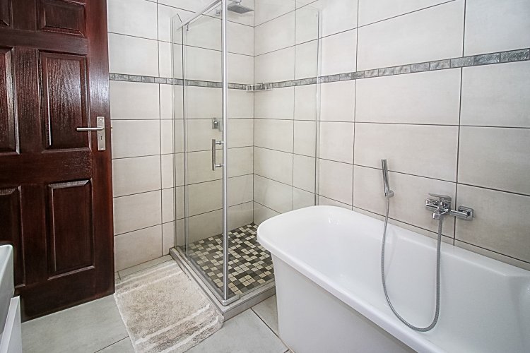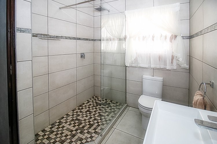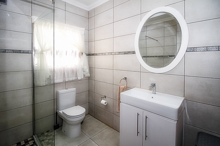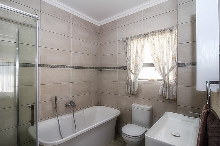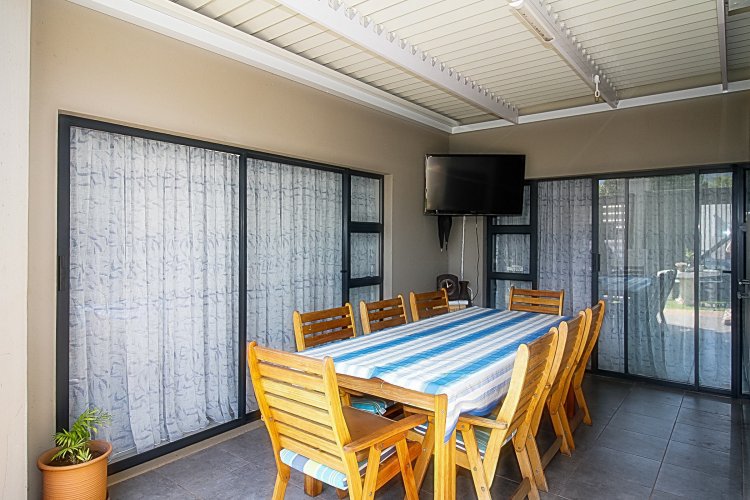 The spacious main bedroom has an en-suite bathroom. After a long day, one can relax on the covered patio with a built-in braai, overlooking the mountains. The extra-length garage provides ample space to accommodate the laundry at the back. There is also covered parking in front of the garage. The garden is well-maintained, and big enough for a small dog.