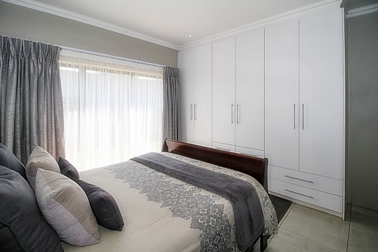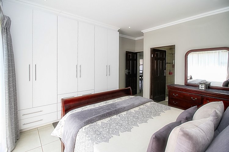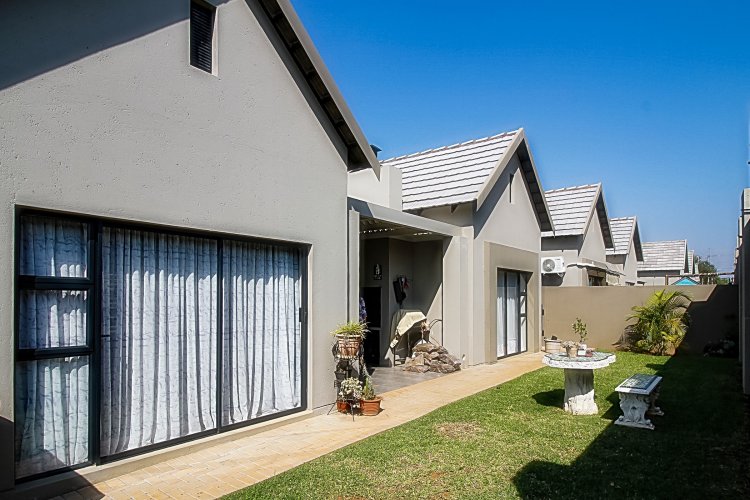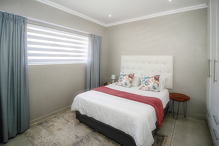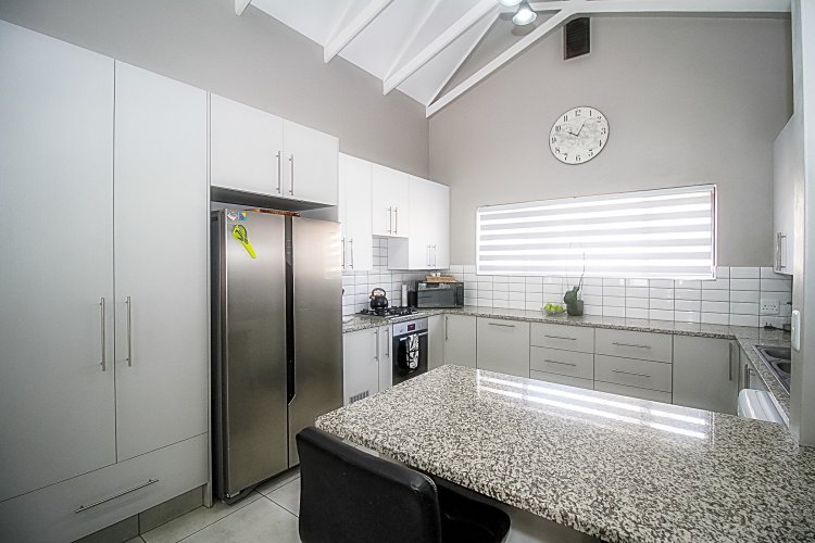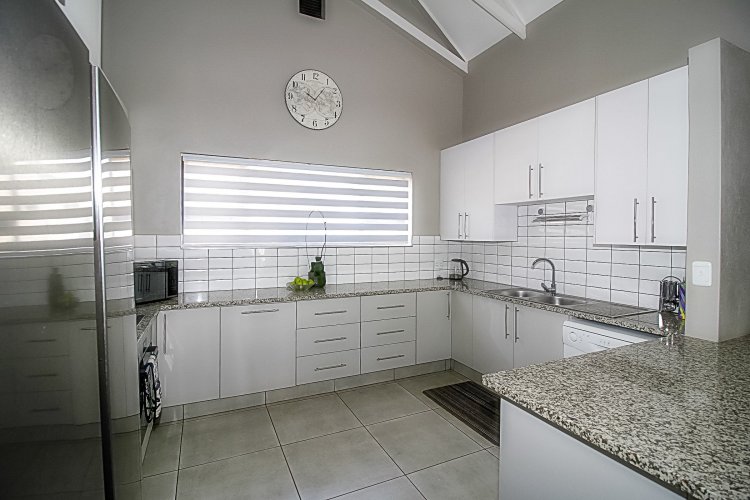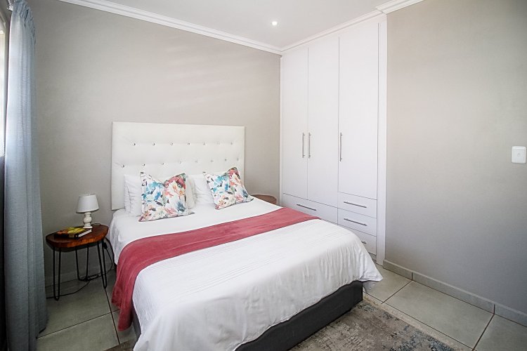 This neat and modern townhouse is ideal for a retired couple or first-time homeowners. The open-plan living area has high ceilings which give a sense of space and adds natural light to the home. Modern kitchen with ample cupboards, granite tops and a beautiful granite breakfast bar. Two sunny bedrooms with built-in cupboards, and two bathrooms.