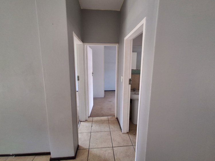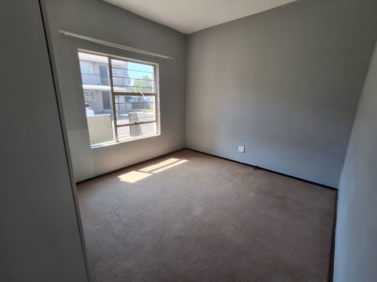 It offers a white melamine kitchen with breakfast nook which is open plan to a tiled living room, two sunny bedrooms both with built-in cupboards and lovely bathroom with a bath. A private garden, covered, tiled patio with a built-in braai, one covered parking, one open parking, prepaid electricity and water. Set in a neat complex with electric fencing, 24-hour security, lovely gardens and polar system plus it is close to all amenities. Great rental investment or convenient for lock-up and go!