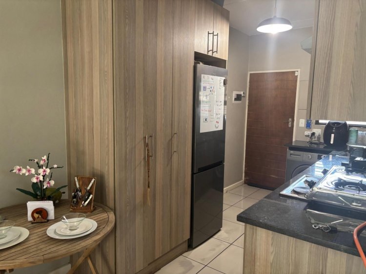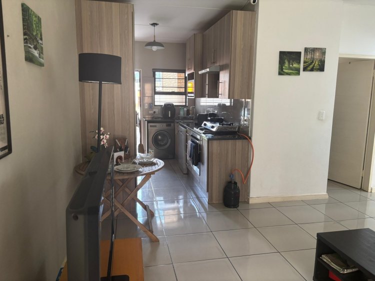 This lovely unit is a good find, offering modern finishes and immaculate condition throughout. Stylish porcelain tiles flow seamlessly through the home, enhancing its contemporary appeal. Upon entering, you are welcomed by a sleek, modern kitchen featuring granite countertops and space for two appliances. The well-sized lounge and dining area opens effortlessly onto a tranquil garden with patio – perfect for relaxed indoor-outdoor living. The unit boasts two generously sized bedrooms, both fitted with built-in cupboards, and a beautifully modern bathroom with both a bath and shower. Set in a very neat and well-maintained complex, the property includes a covered carport and additional visitors’ parking. Enjoy peace of mind with excellent 24/7 security and access control. Book an appointment to view this lovely gem of a property!