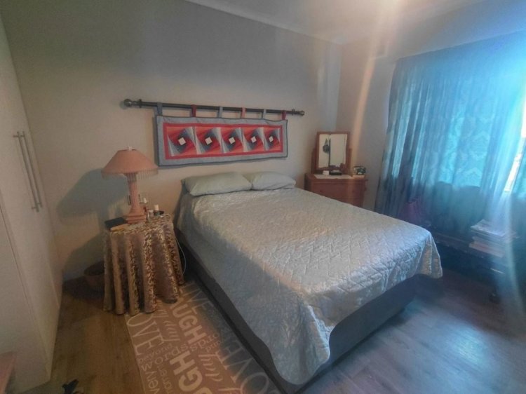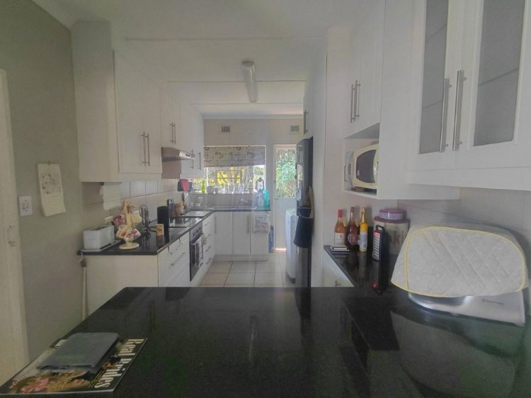 This revamped unit is situated in a small well-run complex of 10 units within walking distance to all amenities. The unit is at the back of the complex and very private, fully fenced with ample garden space for a small dog. The open plan tiled lounge is spacious and opens up to the well fitted kitchen with granite tops and an abundance of cupboards. Leading off the lounge is a small study/sewing room with ample cupboards and work top. The two bedrooms have vinyl flooring and extra built in cupboards. The revamped bathroom is tiled with bath, basin, toilet and large shower. The single garage is automated and leads directly into the house. The plus is the 1.5 Litre Jojo tank with its own pump, a small garden shed as well as passive alarm breams. Very seldom does a unit become available in this sought after complex.