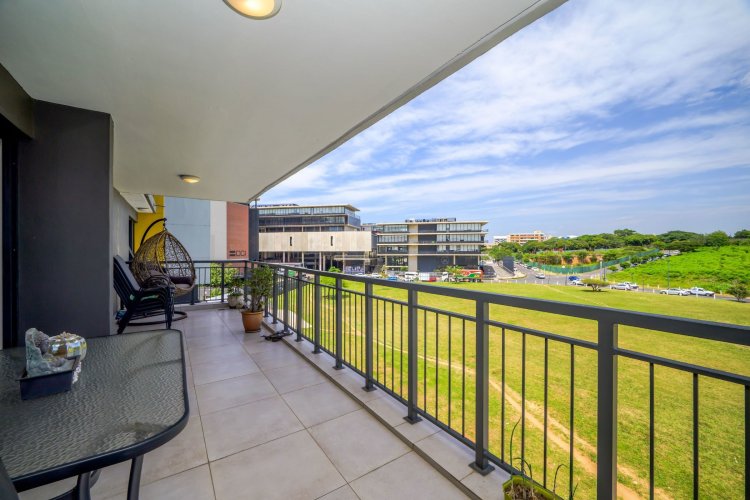 The open-plan lounge and kitchen create a seamless flow, leading onto a spacious private balcony.