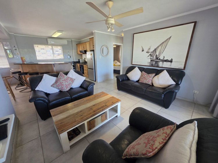 Set within a beautifully maintained and well-managed beachfront complex, this fully furnished residence combines comfort, style, and convenience in one irresistible package. The light-filled open-plan kitchen flows effortlessly into the dining and lounge area, creating a spacious, welcoming environment ideal for both everyday living and entertaining. Large sliding doors lead onto a sea-facing patio — the perfect spot for morning coffee or evening sundowners while enjoying panoramic ocean views.