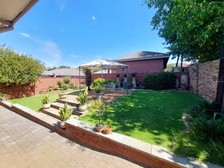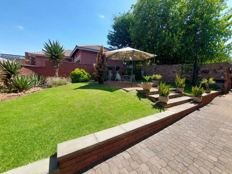 Double doors from the lounge open to an indoor braai area with a built-in braai and extra storage space, overlooking the private landscaped garden fitted with automated irrigation for easy maintenance.