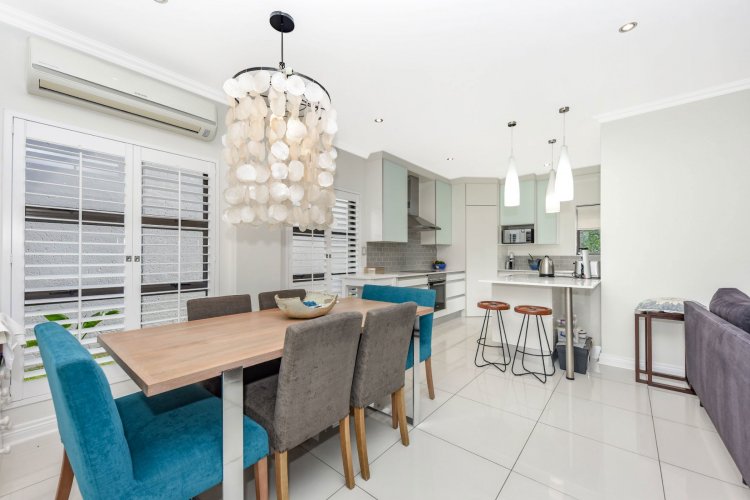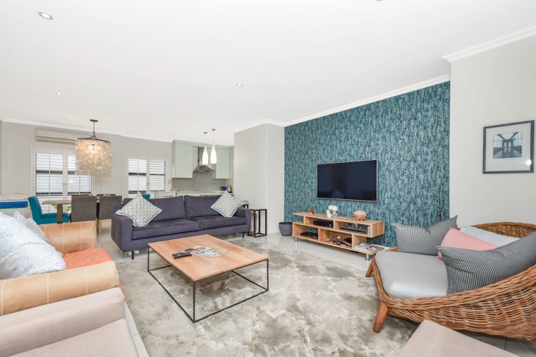 This modern, light-filled home offers refined open-plan living with seamless indoor–outdoor flow, ideal for both comfortable family living and effortless entertaining. The ground floor features spacious air-conditioned living and dining areas, where large stacking doors flood the living space with natural light and open onto a covered patio, creating a natural extension to the private garden and sparkling swimming pool.
