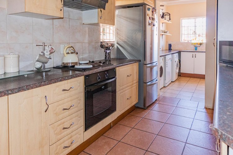 Offering a fully fitted kitchen. Formal tiled lounge leading to a dining room and spacious lounge. Doble size bedrooms with BIC, 2 bathrooms (MES). Remote controlled double garages. Fully walled with good security.