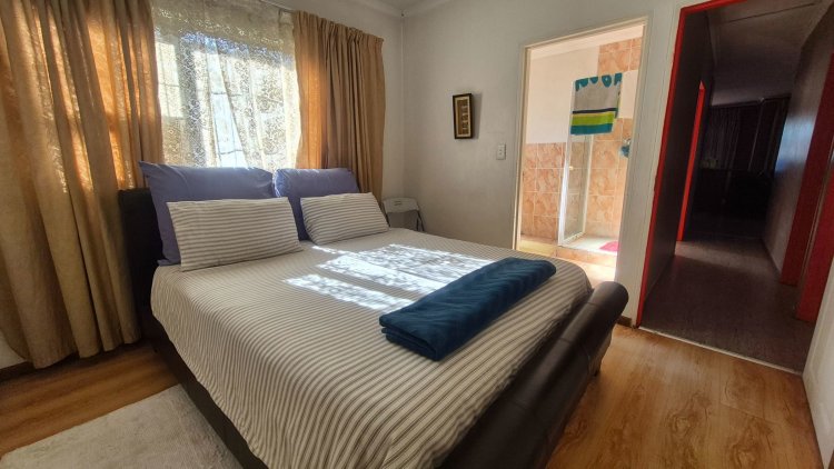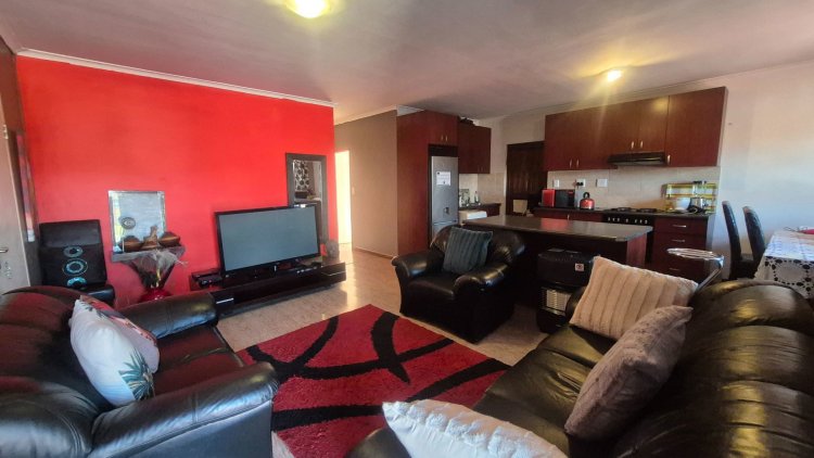 A Family house that offers you spacious living area. The open plan kitchen with a island, creates the feeling of a family enjoying time together in the kitchen and living area. A well maintained property with lots of build in cupboards. Main Bedroom with a spacious on-suite. Other 2 bedrooms both with built in cupboards. Lock up garage with a drive thru option to the back yard. Lots of paving with off road parking in front of the property.