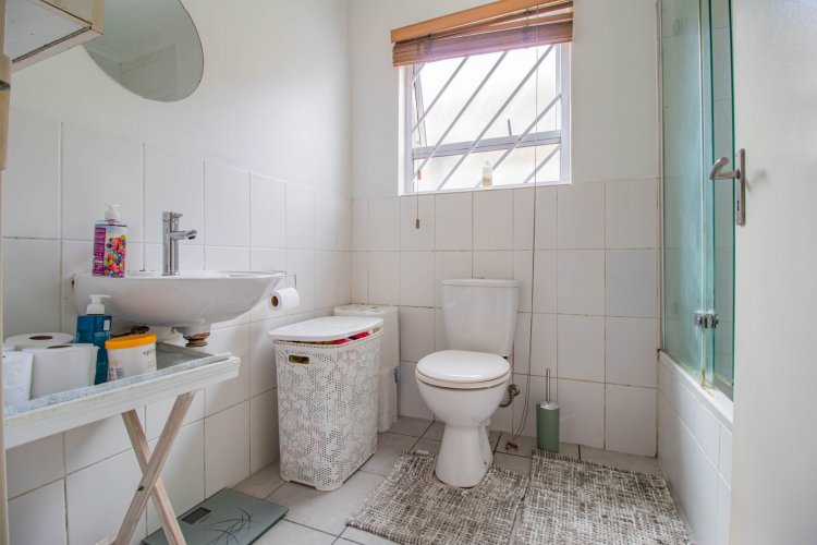 Full Bathroom – Beautifully tiled with a bath, shower, toilet, and basin.