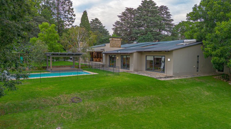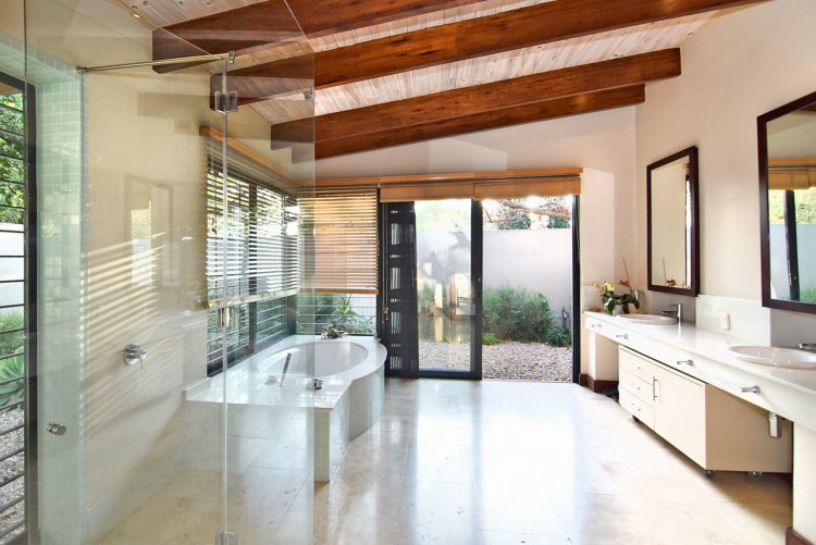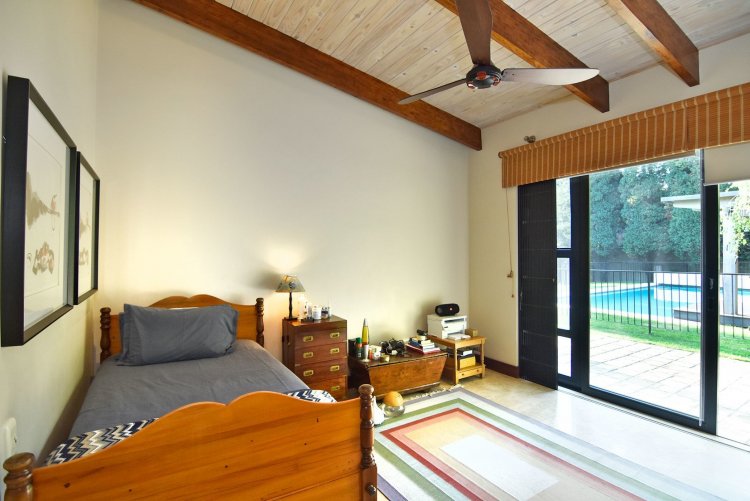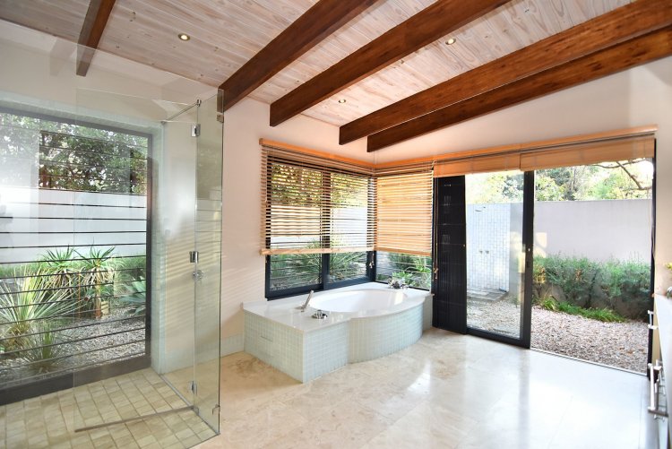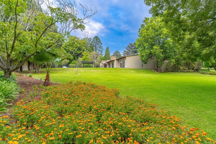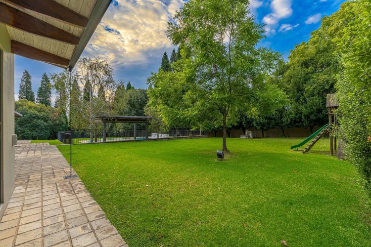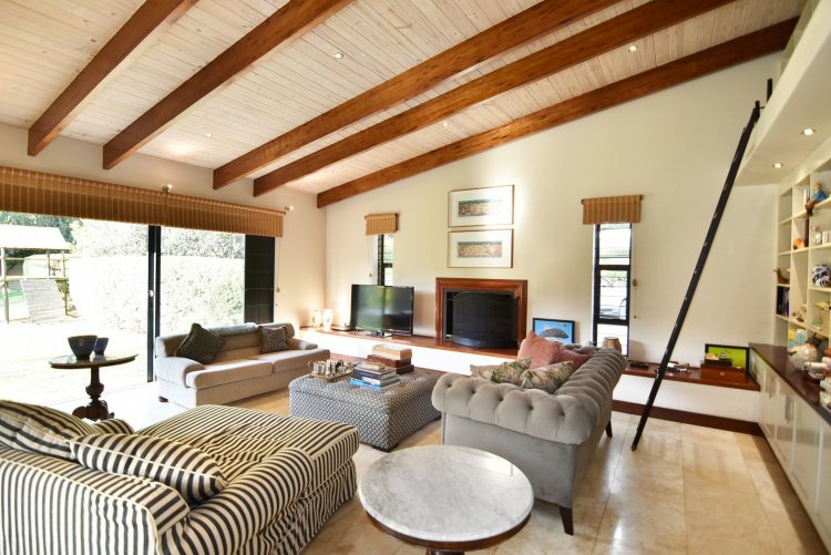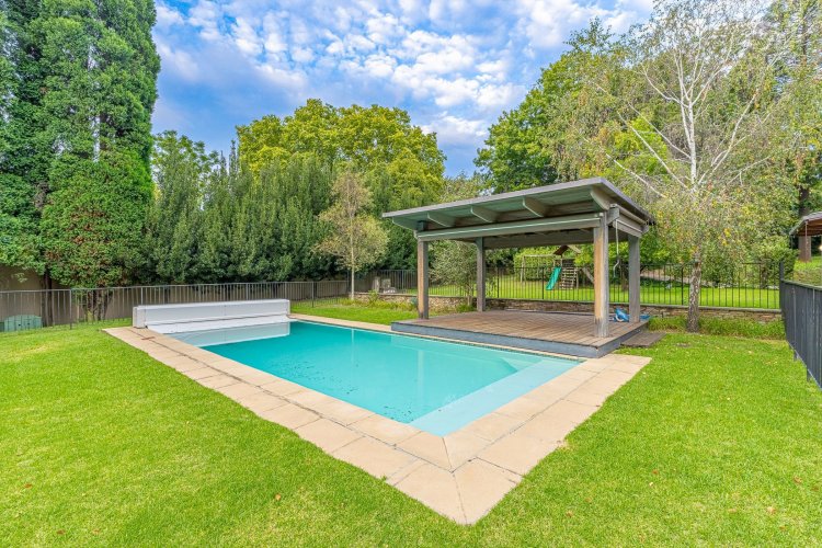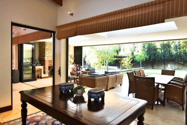 Several interleading reception areas which embrace an indoor/outdoor lifestyle where both formal and informal entertainment areas interweave in a seamless flow of comfort. Formal lounge leads to entertainer's patio Baronial dining room ideal for both formal and informal entertaining - leads to patio Bespoke designed kitchen bathed by natural light, with a central island opening to an al fresco dining area. Separate laundry, scullery Family room which allows for intimate family interaction and living. Superb main bedroom suite with dressing room, luxurious full bathroom looking onto enclosed private garden with outside shower. Extra loft storage facilities. Two further bedroom suites with study areas. ALL BEDROOMS OPEN TO POOL AREA and Garden