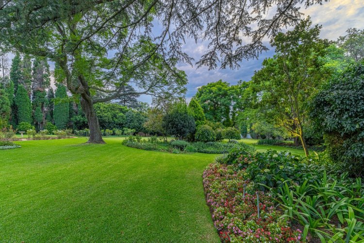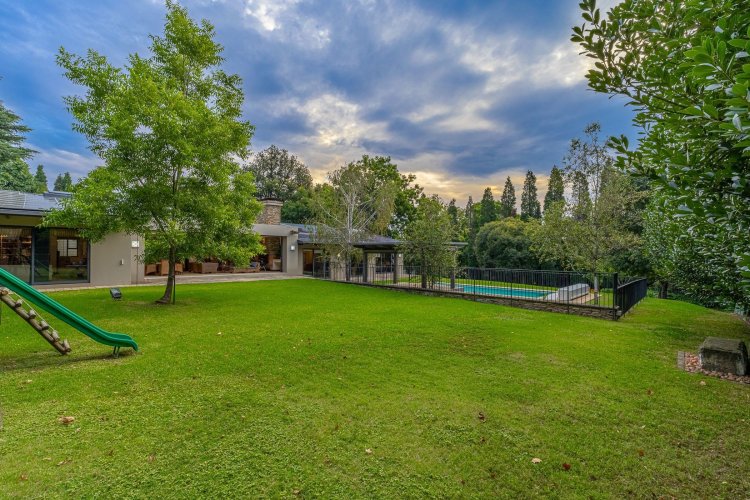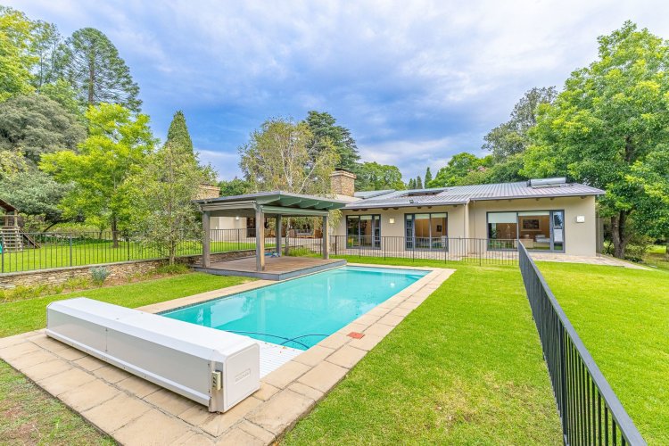 In pristine condition with the highest quality finishes where a symphony of textures, soaring heights, exposed eves, travertine marble floors, aluminium stacking sliders and windows, marble finishes, verdant green gardens, water features and fountains, integrate creating an environment of exceptional beauty and serenity. Inviting entrance with pull through to the baronial size, double volume reception areas, entertainer's patio, sparkling pool and low maintenances garden with vistas of Sandton's skyline creating a magical environment of enchantment.