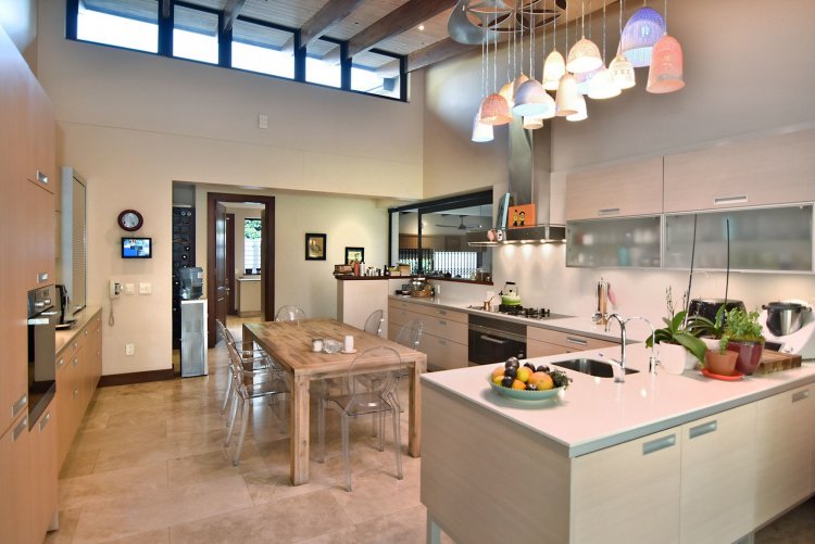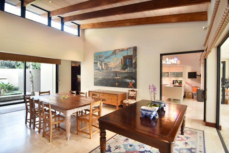 This contemporary family home, with soaring heights and double volumes, oozes charm and character with an endearing mix of sumptuous luxury, an eclectic combination of creativity and inspirational flair, offering all the conveniences expected for modern, comfortable living where fluidity of space and proportion is the focal point of casual entertaining and family interaction.