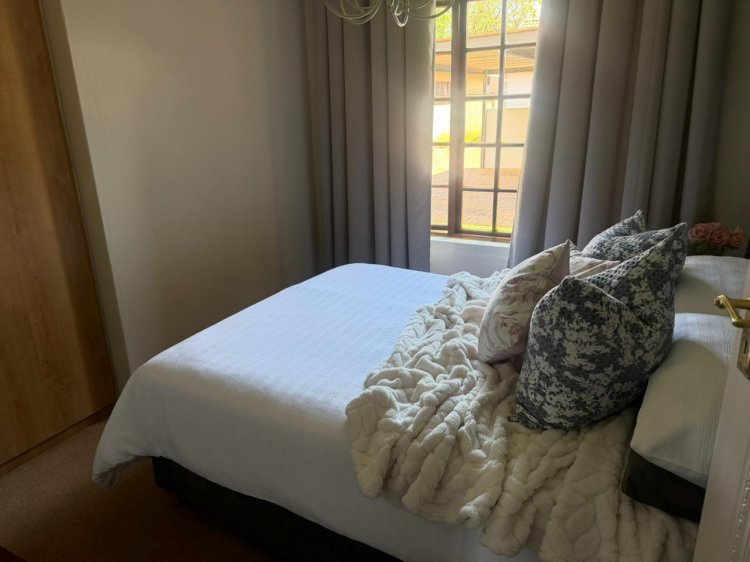 In a secure complex that only has 5 full title properties in complex. The property offers 3 bedrooms, 2 bathrooms, open plan living area a kitchen. When you step into the house, you walk into the living that is giving a Country Style feeling. High walls for the hot summer breeze of Koster. Indoor fire place in the living space for those cold winter days.