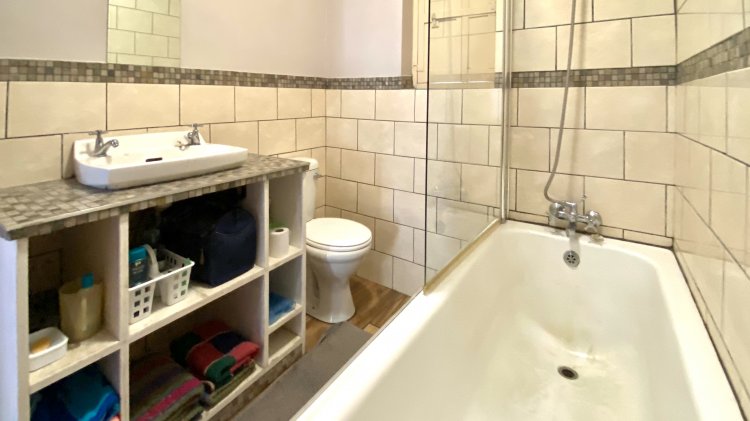 Storied Interiors: A long corridor leads to three spacious bedrooms, each filled with light and potential. High ceilings and a vintage layout reflect its storied past. The bathroom, with its historic wooden shutter, whispers tales of days gone by, ready for a thoughtful modern touch.
