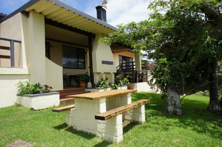 • A covered patio with a built in braai.