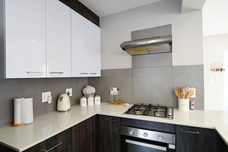 Step inside and enjoy the seamless flow of modern open-plan living. The lounge and dining area are filled with natural light and connect effortlessly to a chic kitchen featuring marble countertops, a gas hob, breakfast nook, and a separate scullery to keep your home neat and organized.