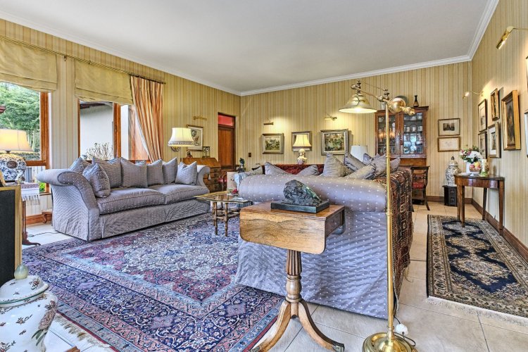 The beautifully proportioned reception rooms flow effortlessly from one to the next, creating an atmosphere ideal for both refined entertaining and relaxed family living. Multiple lounges and a gracious dining room are anchored by gas fireplaces and abundant natural light, all opening onto an expansive patio that frames immaculate gardens and sweeping golf course views.