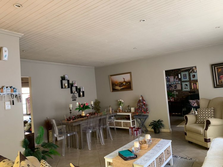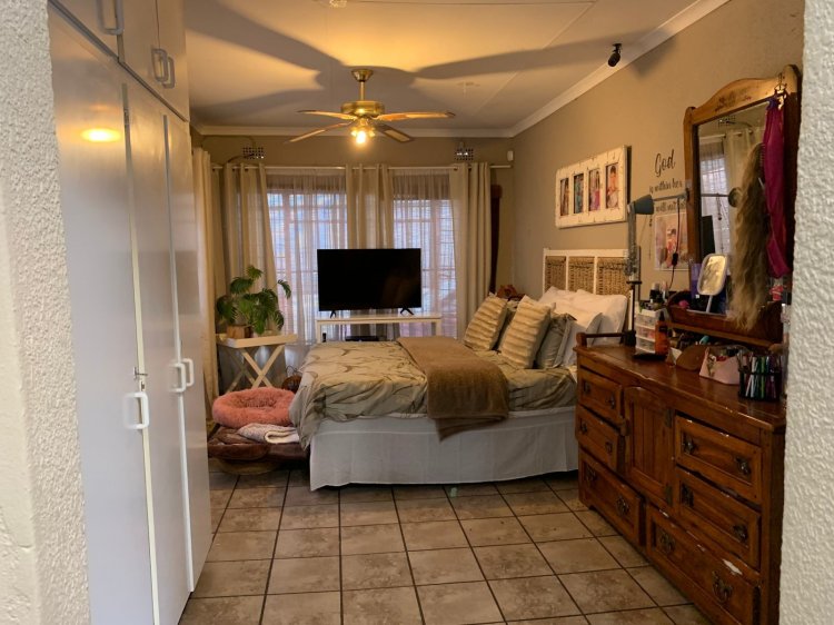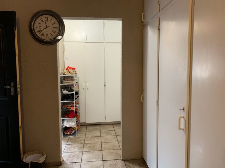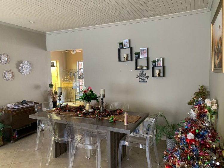 The home has 3 spacious bedrooms, the main bedroom has a walk-in closet and own bathroom with shower, basin and toilet. The kitchen has built-in kitchen unit and an island table. The dining area has been turned into a tv/family area which makes it convenient for family to spend time together while the others are cooking. It also has an open plan dining area on the other side of the kitchen. The kitchen has 2 stoves, one is a fully installed gas stove and the other an upright stove with an oven. Trough the passage there is a laundry room and next to it is a family bathroom with a bathtub and toilet.