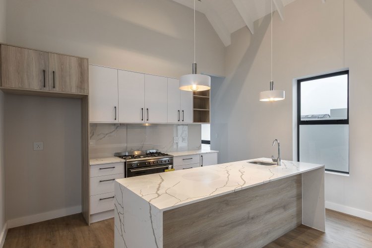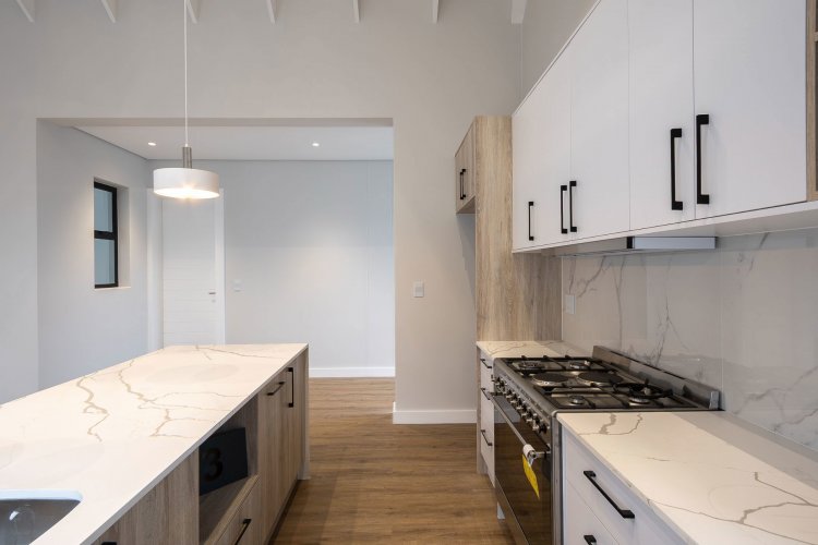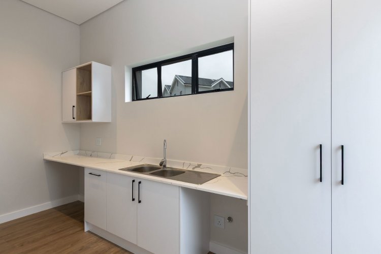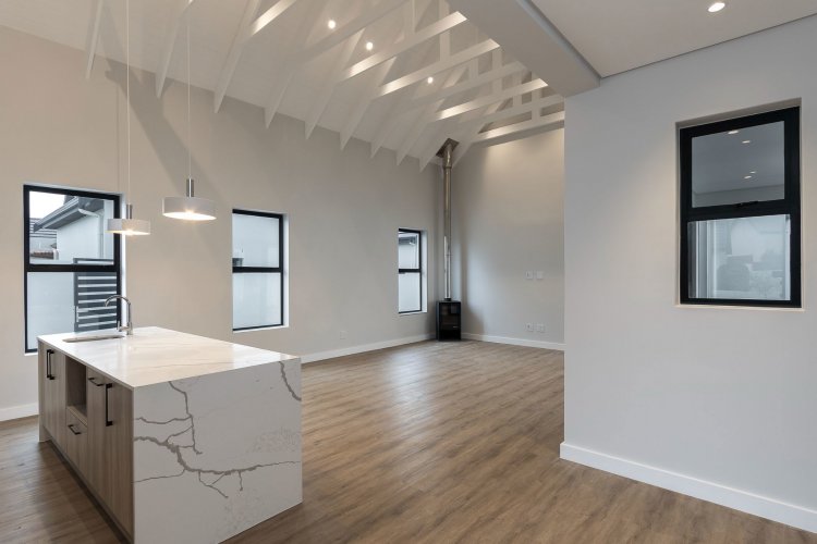 The living area boasts open plan living at its best, with the kitchen, dining area and lounge all together, looking out onto the covered patio. A separate scullery finishes the house, with all appliances neatly tucked away.