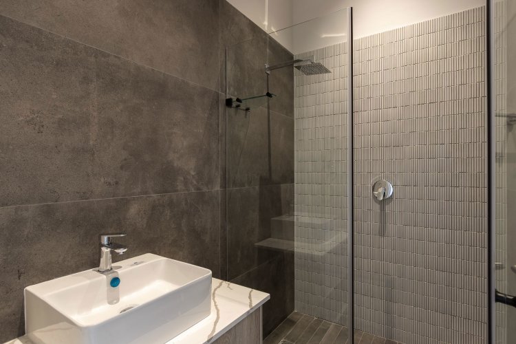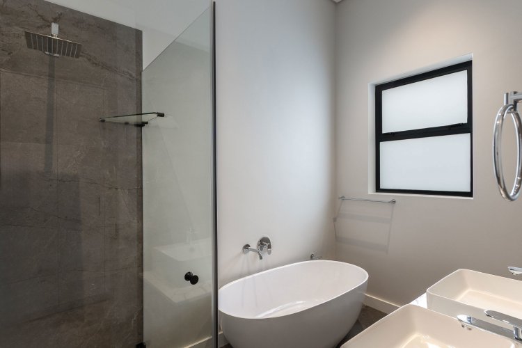 This house has 3 good sized bedrooms, all en-suite and a separate study nook looking onto the garden. The master bedroom has a walk in closet, sliding doors to the private garden and a double vanity in the full bathroom.