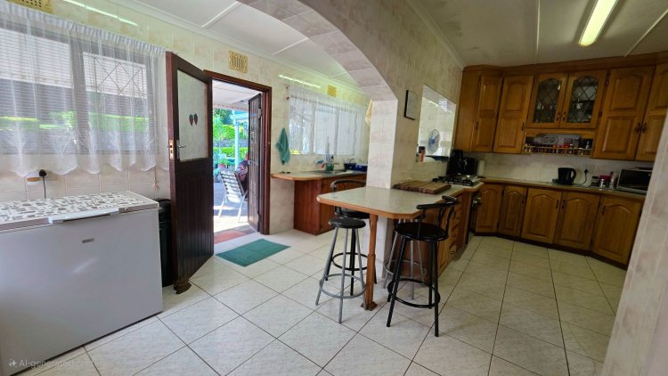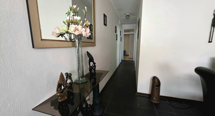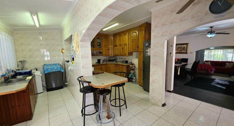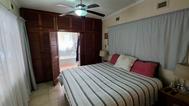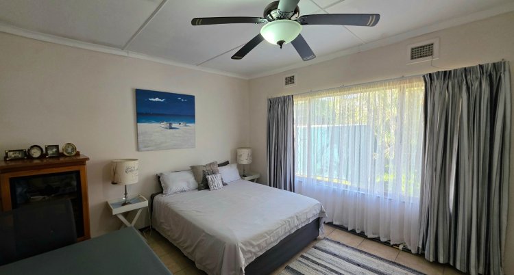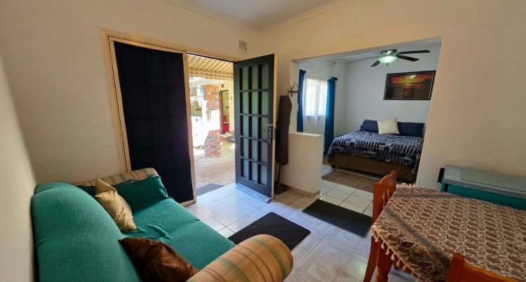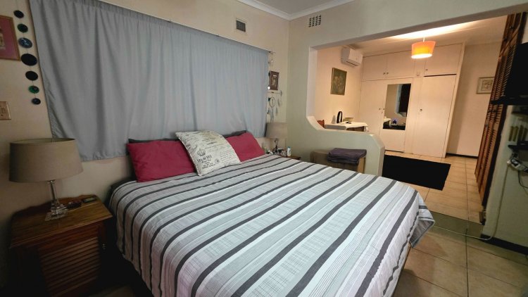 This immaculately maintained three-bedroom home in Sunwich Port offers a practical layout, quality finishes, and excellent extras. The main house features a spacious open-plan lounge, dining room, and kitchen. The kitchen is fitted with solid wood cabinets, a gas hob, and a separate scullery with space for all major laundry and washing-up appliances. Ceiling fans are fitted throughout, and the main bedroom and dining area have air-conditioning for added comfort. The main bedroom includes a stylish en-suite bathroom. The second bathroom features a large shower, basin, and separate toilet. A private backyard with a swimming pool and adjacent undercover patio creates the ideal setting for relaxed outdoor living and entertaining. As a bonus, the property includes a one-bedroom flatlet with a bathroom, ideal for extended family, guests, or rental income. The home is fitted with an inverter system and backup batteries. A plumbed-in water tank system with a pump ensures additional peace of mind. There is a single automated garage and undercover parking for at least three vehicles. Contact me for more information or to schedule a private viewing.