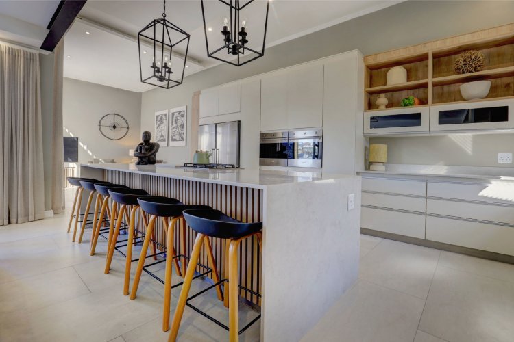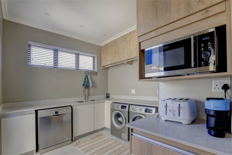A Showcase of Style and Sophistication: The property's interior is a testament to attention to detail and superior finishes. The open-plan living, dining, and kitchen area creates an expansive, inviting space perfect for entertaining. The designer kitchen is both beautiful and practical, while the dedicated scullery is fully equipped with a washing machine, tumble dryer, and dishwasher.