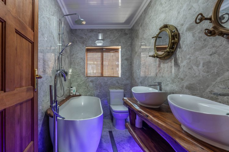Enjoy a relaxed braai next to the jacuzzi, unwind in the potjie and gas-braai area complete with a traditional Dover oven, or entertain upstairs in the enclosed entertainment room featuring another Dover oven and partial sea views. Whichever you choose, every space offers its own special atmosphere for creating memorable moments.