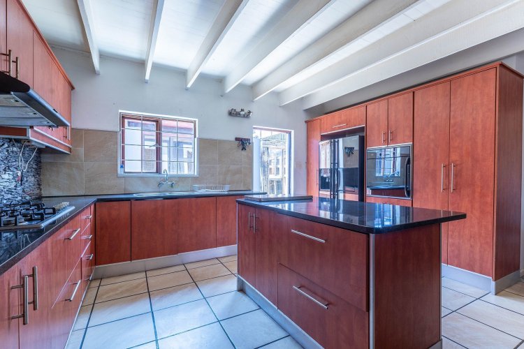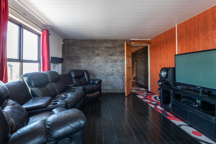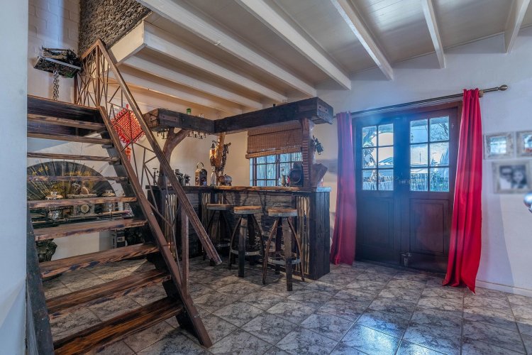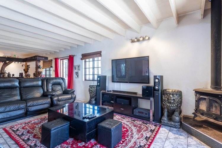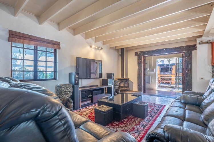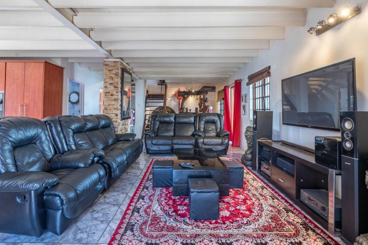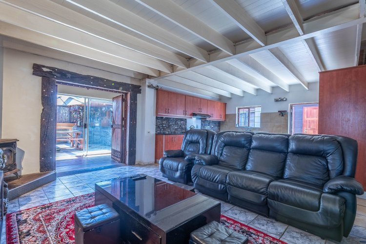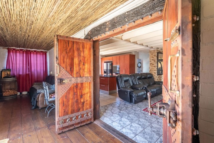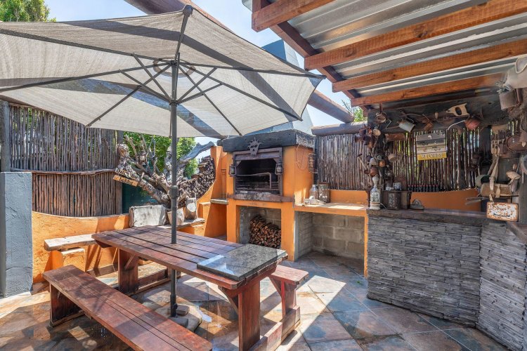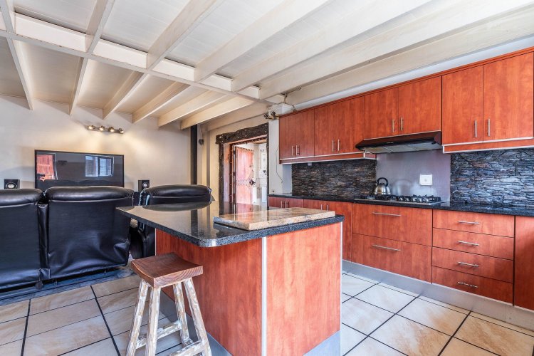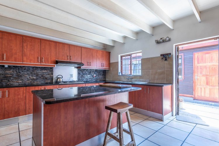 Inside, the first level welcomes you with a granite-top kitchen boasting a gas stove and center island, seamlessly flowing into the spacious lounge and dining area. A blackwood bar (note: not included in the sale) adds warmth and charm, while the handcrafted blackwood door leading to the outdoor braai area is truly a piece of art.
