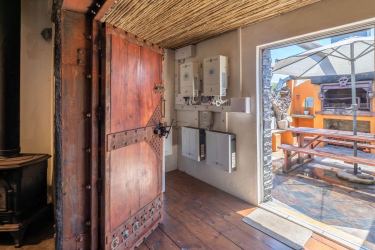 For the self-sufficient enthusiast, this property is a gem. It features three greenhouses — perfect for year-round vegetable growing. Power comes from an impressive 48-panel solar system (10kW inverter with 15kW battery storage), and the water supply is completely independent of the municipality, with 27,000L total capacity sourced from rainwater and a well point. Well point water to the house is going through a 3 sage Big Blue filters> All 5 micron. Drinking water going through a 2 stage Big Blue Filter, one 5 micron and one 1 micron filter. An additional 5 micron carbon filter and fridge filter