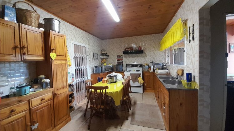 This property is perfect for families looking for space, comfort, and security in a well-maintained neighbourhood. As you enter the home, you are welcomed by a warm and inviting entrance that immediately creates a comfortable atmosphere. To the left, you'll find a well-sized dining area that flows seamlessly into a wooden kitchen, complete with a convenient scullery. The scullery opens onto a secure, undercover patio with direct access to the double garage . The home offers three spacious bedrooms, all fitted with built-in cupboards, blinds, and ceiling fans for added comfort. The main bedroom features its own en-suite bathroom, providing privacy and convenience. This property offers the added benefit of two separate entrances, providing convenience and flexibility. One entrance leads to a large undercover carport, comfortably accommodating up to 6 vehicles — perfect for extended family, guests, or additional parking needs. The second entrance features paved access, leading directly to the back garden, making it ideal for trailers, additional vehicles. A practical and well-thought-out feature that adds both value and versatility to the property. Extras 3 x Jojo Tanks Shed Staff Accommodation Alarm and Cameras