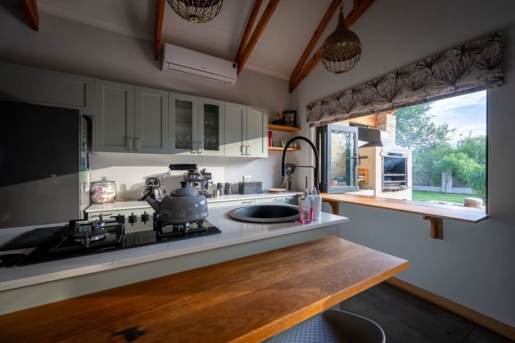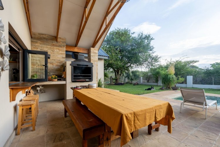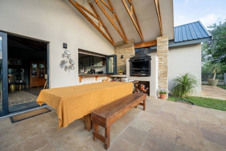 Built-In Braai on the patio, served directly from the kitchen's stackable server window