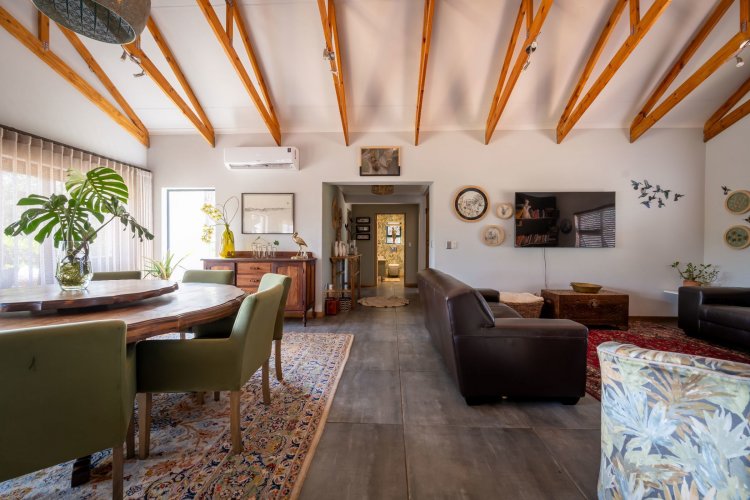 Discover an exceptional property positioned in one of the most sought-after locations on the renowned Zandspruit Bush & Aero Estate. Set in a tranquil pocket of the estate and surrounded by expansive greenbelt areas, this home offers the ultimate blend of privacy, scenery, and bushveld charm. Bordering a natural dry riverbed, the home has been thoughtfully designed to immerse you in the surrounding wilderness. With space to create a beautiful walkway down to the riverbed and the potential for a magical boma area beneath majestic trees, this property invites outdoor living at its finest. Property Features