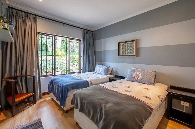 Main bedroom en suite on one side of the home and the other 2 with bathroom on the other side. Double auto garage and plenty of parking for guests. The gardens are yours to enjoy - walking through the established trees and spotting the wonderful birdlife. The upkeep is part of the levies so there is no garden to worry about, only enjoy. Small pets allowed with permission. Levies include Blue Security and Garden service (R4 100 per month). Rates are 2 540 per month. View by appointment. Call Pam Mullany for any further information.