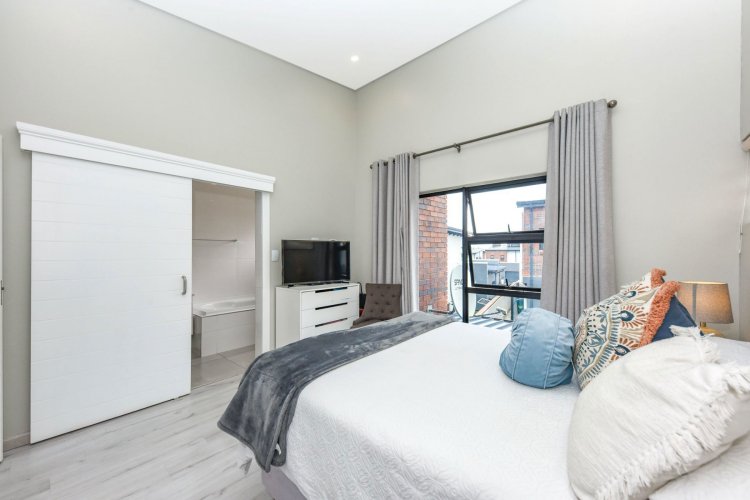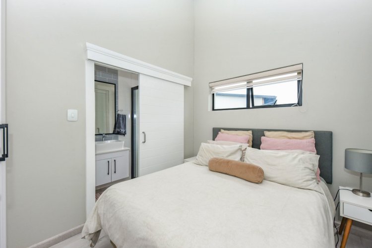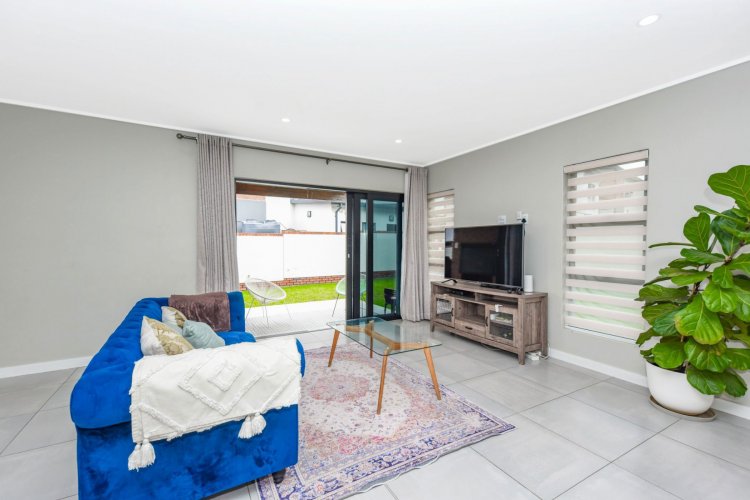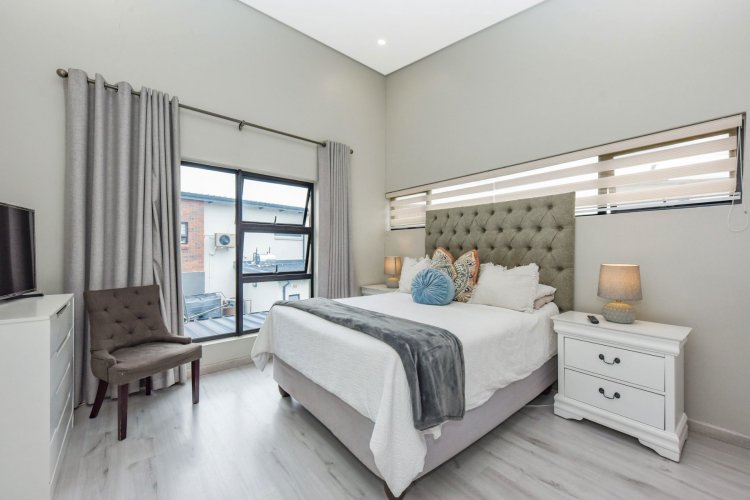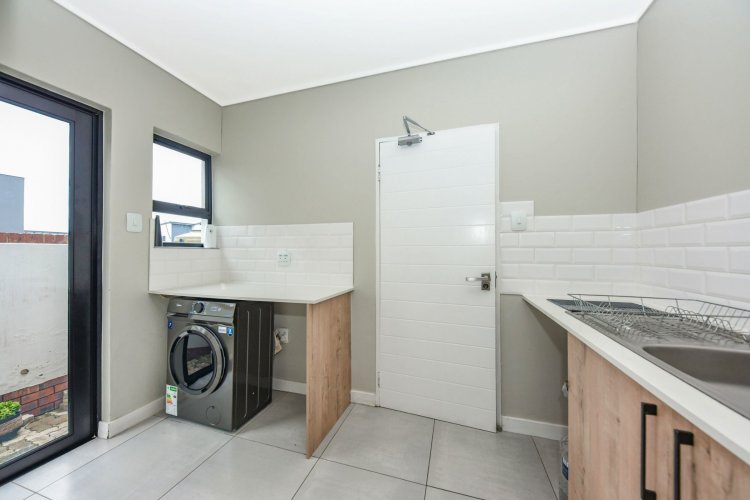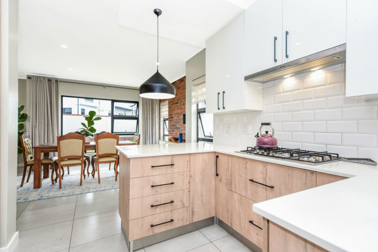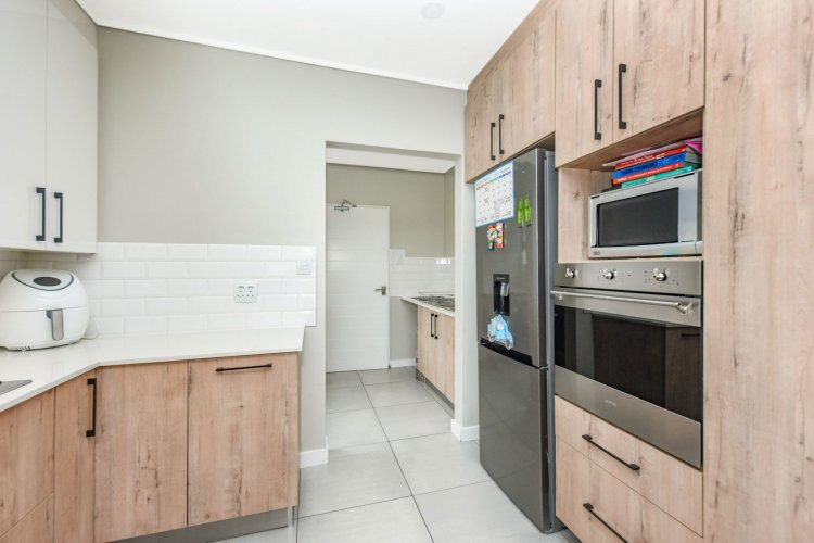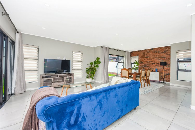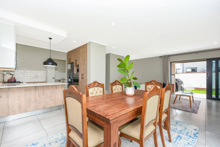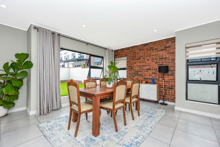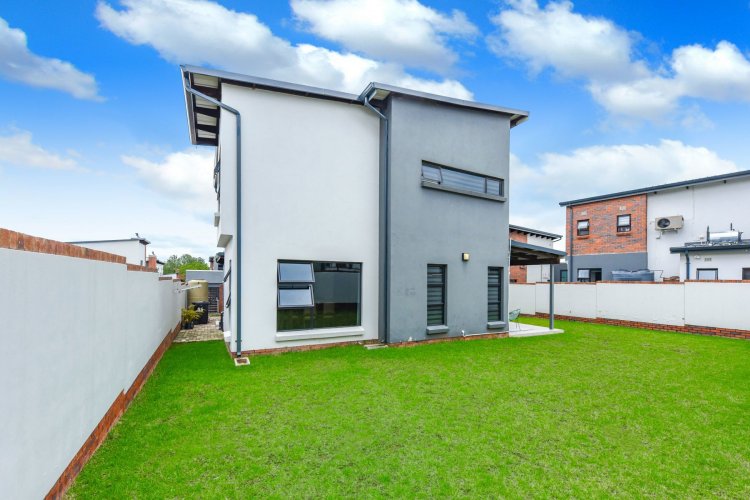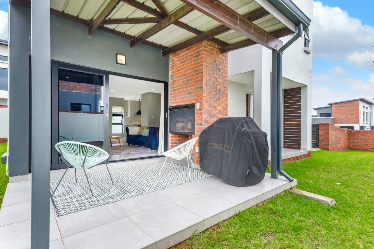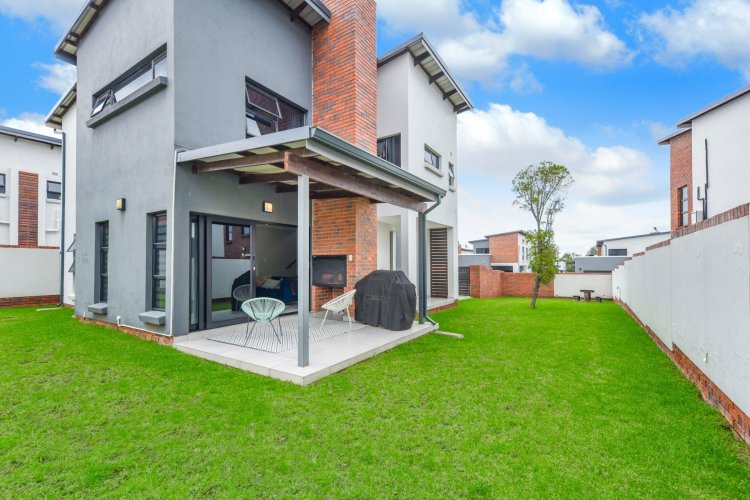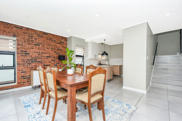 Discover this beautifully built cluster home, showcasing stunning finishes throughout and set on a spacious stand with ample garden space for kids and pets to enjoy. 1000 Litre jojo tank for added convenience. Downstairs, the open-plan living area features a spacious Caesar-stone kitchen and separate scullery, providing the perfect blend of style and functionality. The dining and lounge areas flow seamlessly out to a covered patio with a built-in-braai, overlooking low maintenance garden; perfect for entertaining. Upstairs, you'll find 4 well-appointed bedrooms including 2 en-suite bathrooms and a total of 3 bathrooms, ensuring comfort and convenience for the entire family.