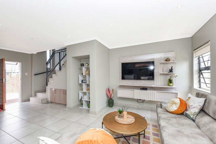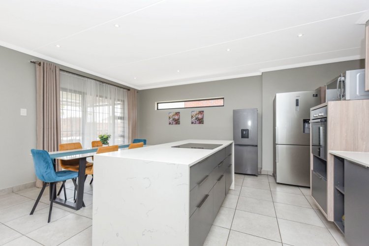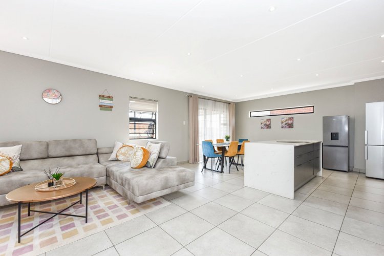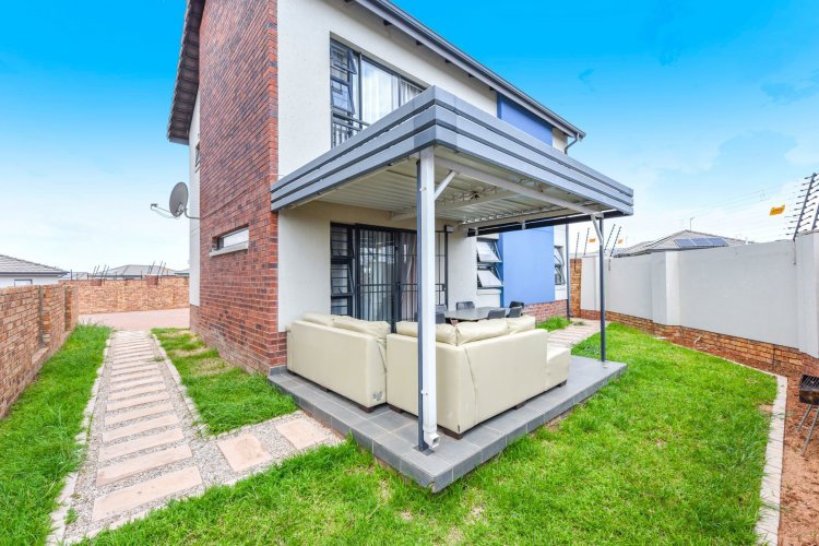 The four bedroom, two and half bathroom double storey house is an ideal family castle. Nestled away in one of the most sought-after security villages in the northern part of Johannesburg, Lion Pride Lifestyle Estate offers both security and modern lifestyle at its best. You will feel the welcoming atmosphere upon entry as the house is designed to allow seamless flow from one room to the other. The open plan kitchen and living room feature the latest modern complimentary finishes with enough space to accommodate more appliances. Everything downstairs was designed with family and friends' entertainment in mind. The Bedrooms upstairs offer family members the privacy they always need. The massive main ensuite bedroom offers enough cupboard space with the bathroom offering both shower and bath with the other three mid-sized bedrooms sharing one bathroom. Stepping outside you are greeted by the massive garden with patio perfect for those family and friends come together moments. The property comes with two covered parking bays and any visitors' cars can easily be parked within the garden behind closed gate. Entrance to the estate is manned 24hrs and with biometric fingerprints access to ensure maximum security. The location offers easy access to most public amenities such as schools and health facilities'. Lanseria Airport is within few minutes' drive while Craddlestone, Fourways and Northgate Malls are just a few minutes away