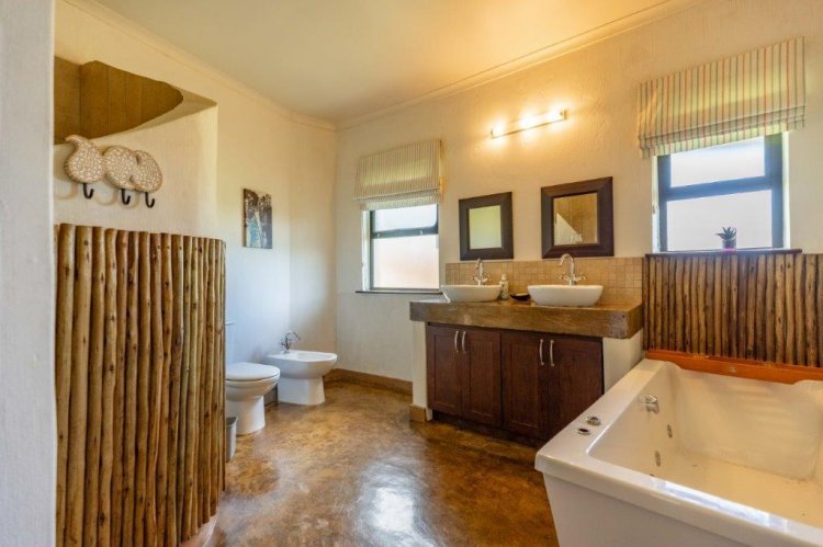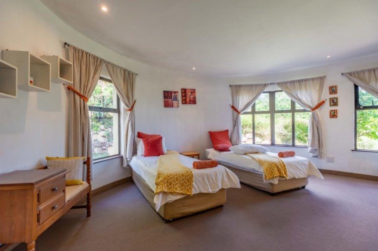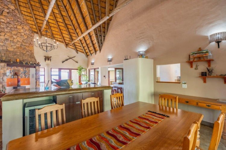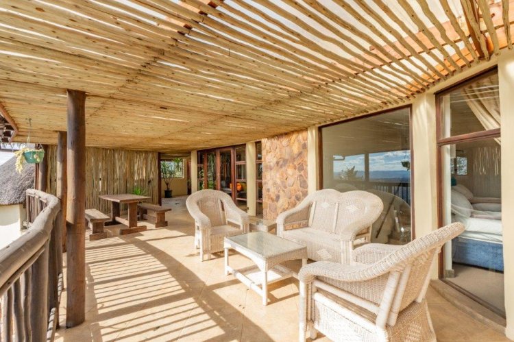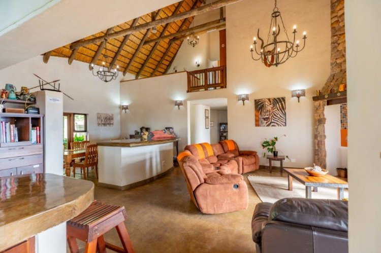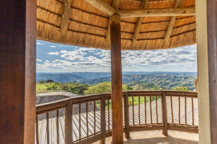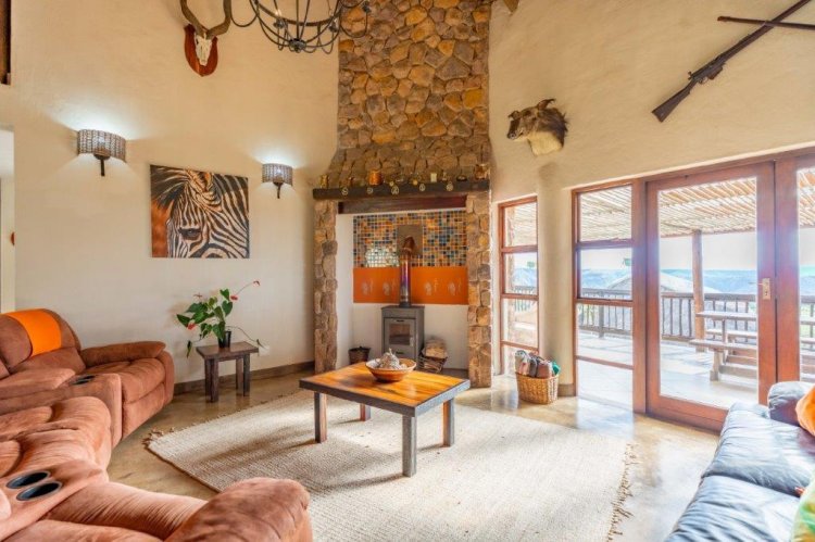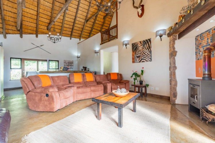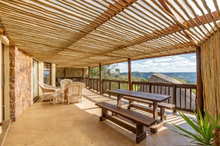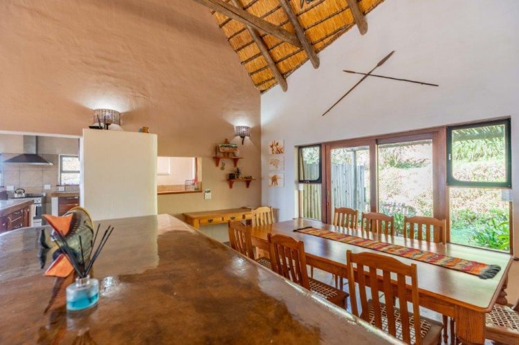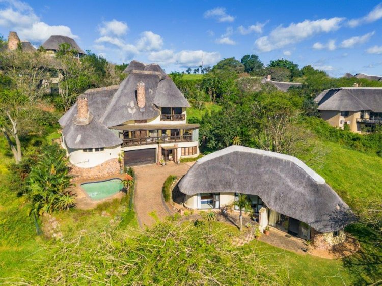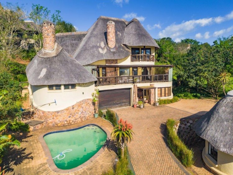 This outstanding custom designed home on the renowned PheZulu Estate has luxury African game lodge appeal with whimsical views over the valley of 1000 Hills due to its prime location on the estate. This gorgeous home has four spacious bedrooms and three bathrooms as well as an additional 2 bedroom cottage that could be used for extended family or to continue the current income generating concern. This house boasts 2 dining areas, kitchen with gas stove and scullery and a fabulous private bar area, topped only by a living area that spills onto and extensive verandah from which one can observe the spectacular sunsets, sip sundowners or start-gaze the most impressive starry night skies available! Come and see this simply sublime slice of the PheZulu Property Pie!