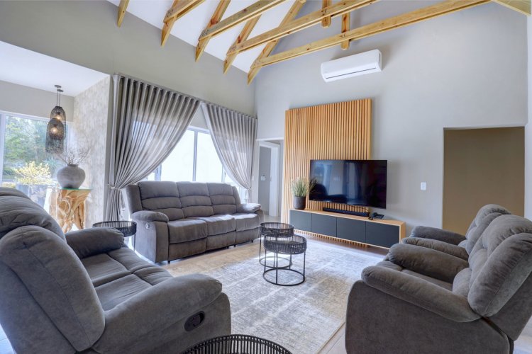 The home has 4 appointed bedrooms en-suite and all on one level. There are 3 garages, off street parking, water tanks, inverter system as well as an Office/Study to complete this home. The property is cladded so no exposed thatch inside the property.