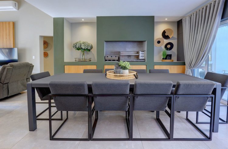 Location is key and here you have a home that has been designed to take advantage of the views with large open spaces and large windows throughout. It is modern, bright, airy with lots of natural light filtering through its floor-to-ceiling windows. This property comes fully furnished as it stands – together with all the modern conveniences with both indoor and outdoor areas, an open plan kitchen, lounge, dining, braai and bar area.