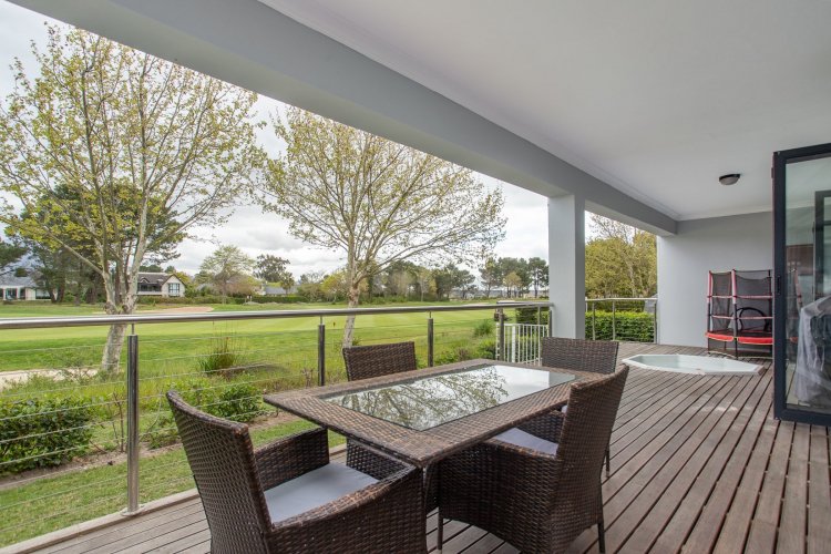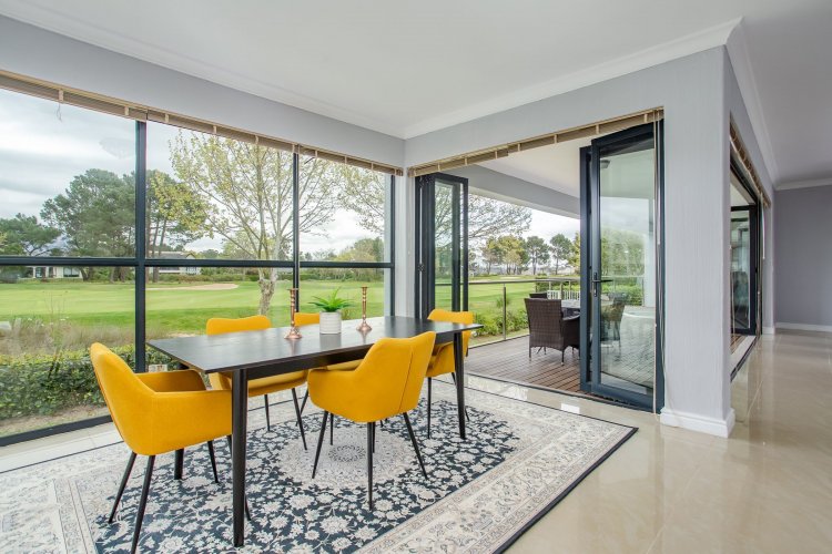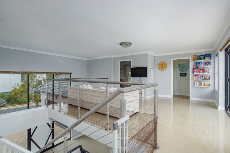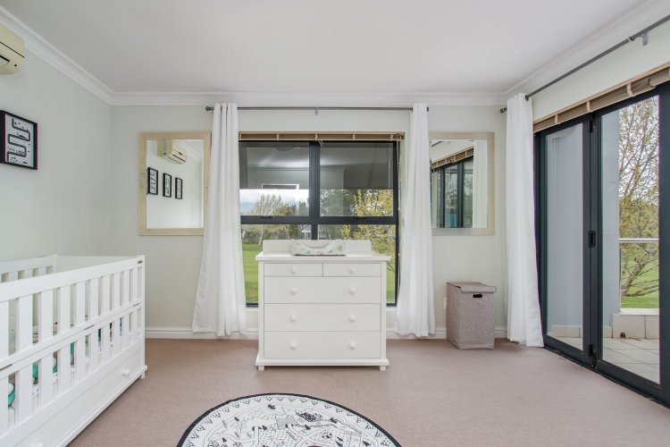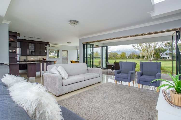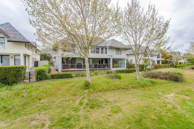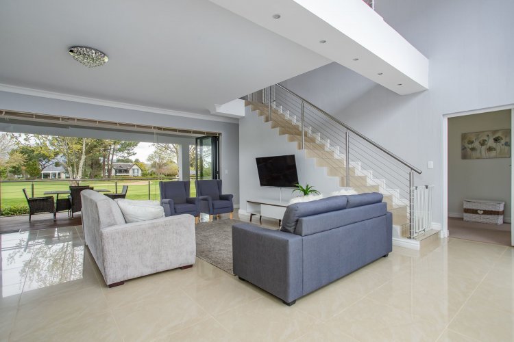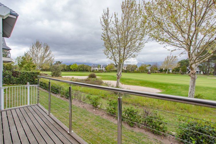 Exclusive Mandate. This elegant four Bedroom home is situated on the 11th Fairway in the prestigious Pearl Valley Golf Estate. It offers uninterrupted views across the manicured course and the majestic surrounding mountains. From the moment you enter, you're greeted by expansive open-plan living spaces and a direct line of sight through to the golf course, creating a sense of openness and connection with the outdoors. The kitchen is complemented by a separate scullery, and flows seamlessly into the dining and living areas — ideal for entertaining or relaxed family living. The home offers flexible accommodation, with a generously sized en-suite bedroom on the ground floor featuring sliding doors that open onto a patio with panoramic fairway views. Upstairs, a cosy pyjama lounge opens onto a private balcony, perfect for enjoying the serene scenery. Three additional en-suite bedrooms are located upstairs, including a versatile main suite option — allowing you to choose whether your master bedroom is on the upper or lower level. Additional features include a spacious double garage and ample guest parking, ensuring convenience and comfort. This is golf estate living at its finest — combining space, style, and a world-class location.
