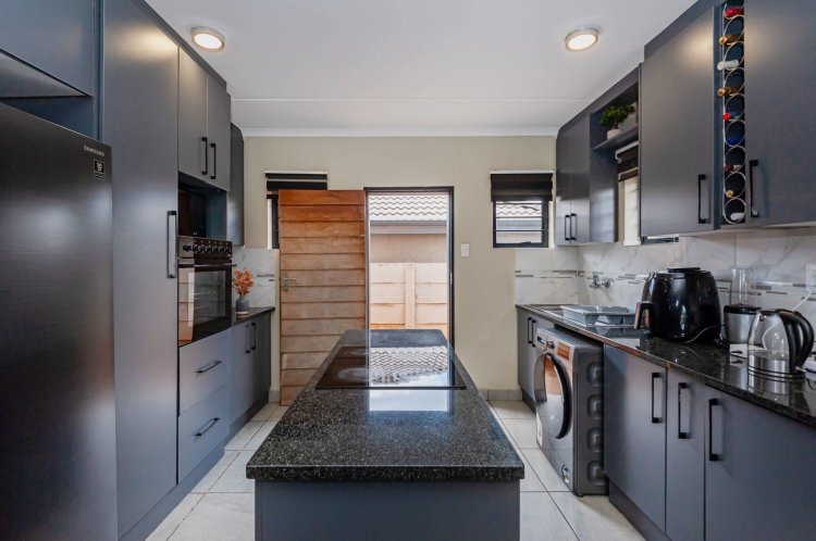 Discover this thoughtfully designed four-bedroom home set within the sought-after Leopard's Rest Estate, where contemporary living blends seamlessly with secure, family-focused comfort. All bedrooms are fitted with stylish built-in wooden wardrobes, while the main bedroom boasts a private en-suite bathroom, offering a peaceful retreat at the end of the day. The open-plan design flows effortlessly between the modern kitchen and spacious lounge, creating a welcoming environment ideal for everyday family living and entertaining guests. The kitchen features sleek, modern finishes paired with practical functionality, perfect for those who enjoy cooking and hosting. The home offers a single garage for secure parking, as well as an additional parking bay for added convenience. Peace of mind is assured with controlled access at the estate gate, ensuring a safe and tranquil lifestyle. The property is also pet-friendly, making it an excellent choice for families and animal lovers alike. Situated in the well-established suburb of Albertsdal, Alberton, this home provides the perfect balance of suburban serenity and accessibility, with close proximity to schools, shopping centres, and major transport routes — an ideal setting for modern family living.