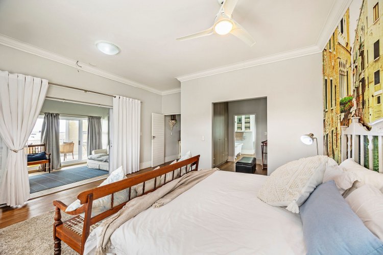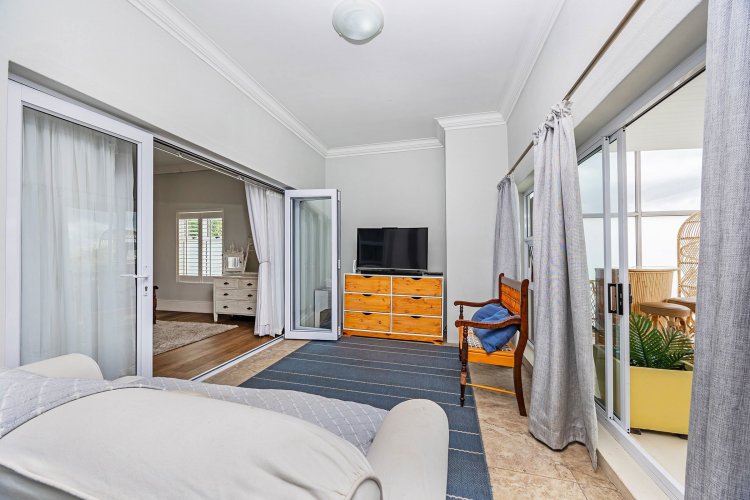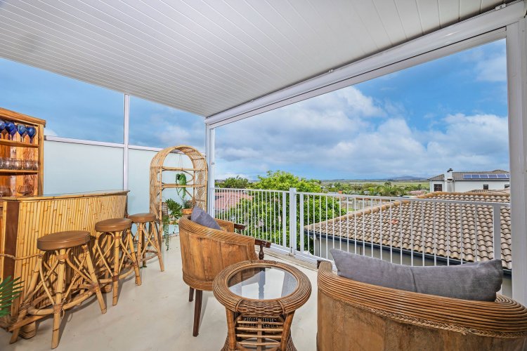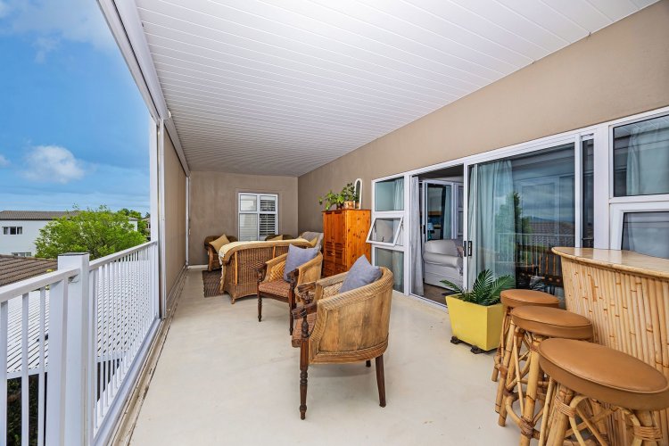 Two of the upstairs bedrooms open with sliding doors to a cozy pajama lounge, which leads out to a private balcony with a built-in bar and outdoor seating area — ideal for morning coffees or evening wind-downs, all while enjoying the estate's scenic views.