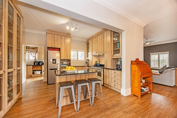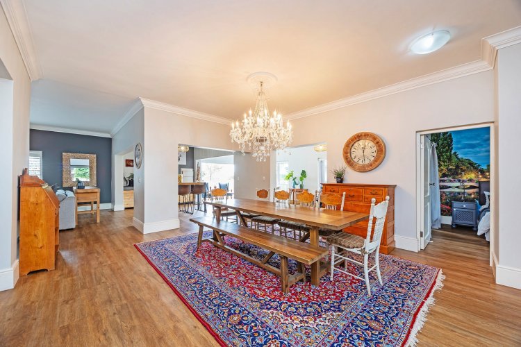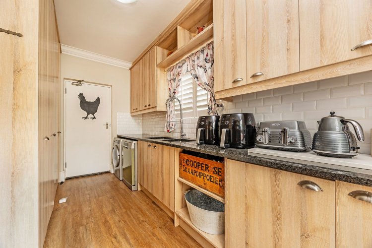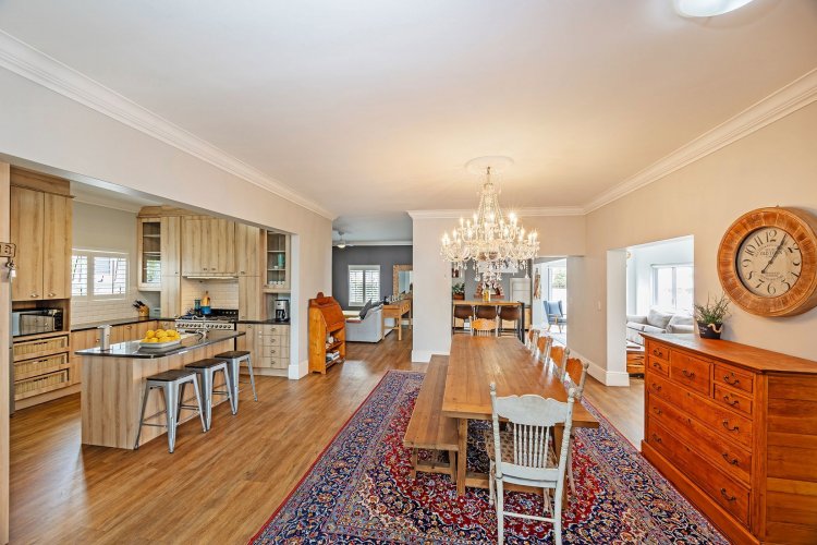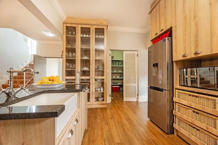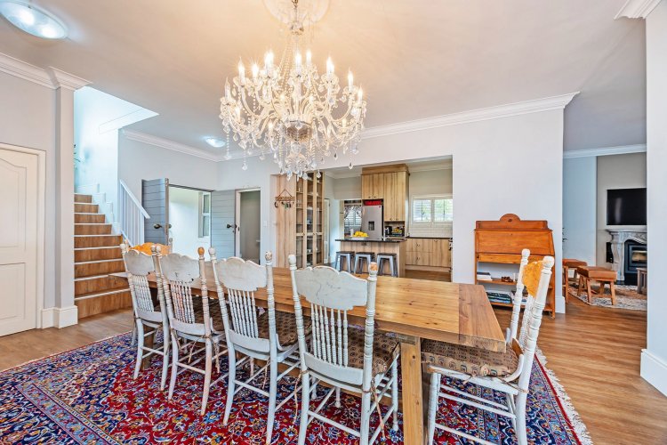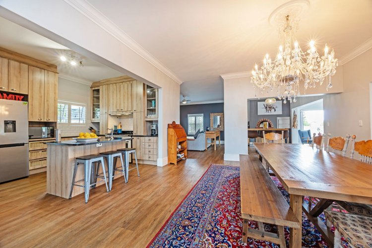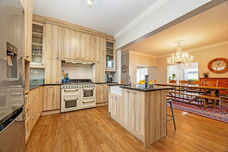 Step inside and discover a spacious dining room, crowned with a stunning chandelier — the perfect setting for hosting family dinners or entertaining friends in style. The heart of the home is the modern kitchen, featuring a central island, sleek finishes, and a fully equipped scullery. Whether you're a culinary enthusiast or a weekend cook, this space is designed to impress.