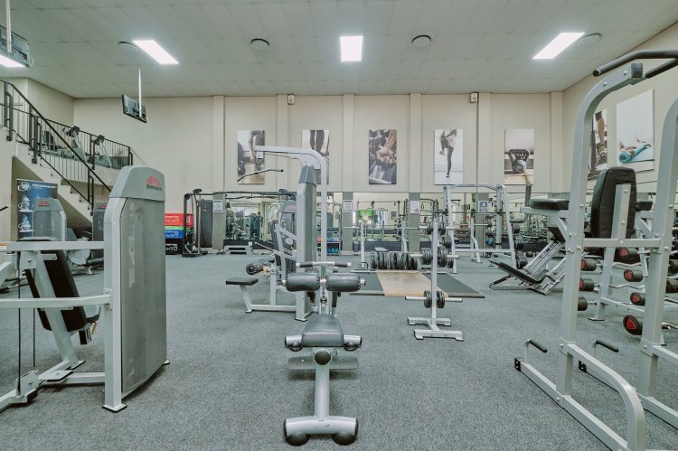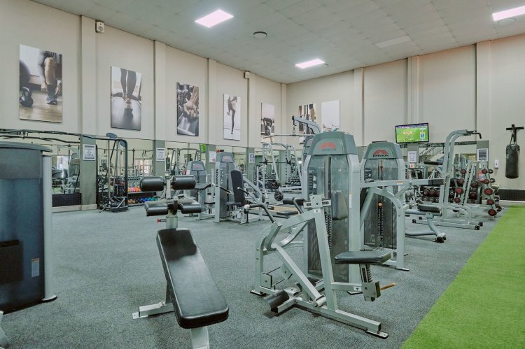 A fully equipped lifestyle center with a gym, hair salon, and tanning facilities