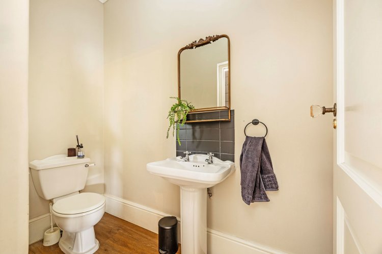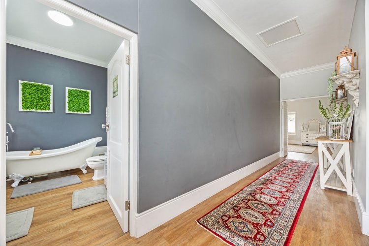 As you arrive, you're welcomed by a beautifully landscaped front garden, a double garage, and four additional parking spaces — perfect for hosting guests or a growing family. The home's grand double-door entrance opens into a warm and elegant interior that immediately feels like home.