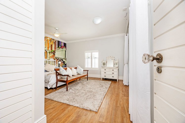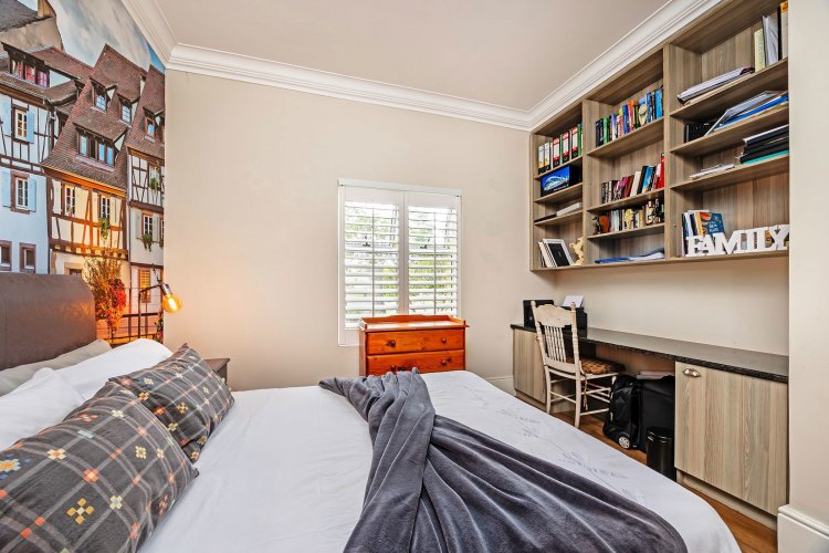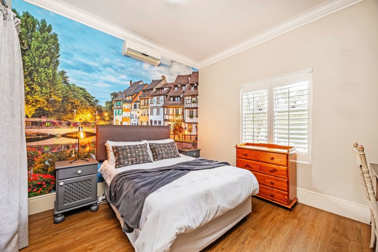 Downstairs, a versatile guest bedroom with built-in cupboards and air conditioning offers flexibility — ideal as a private office, study, or peaceful retreat. There's also a dedicated storage area, ensuring everything has its place.