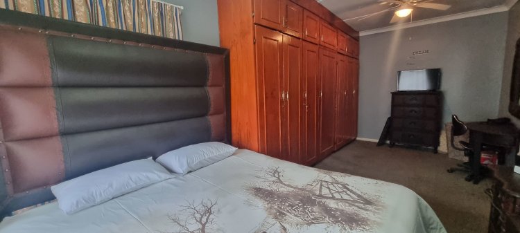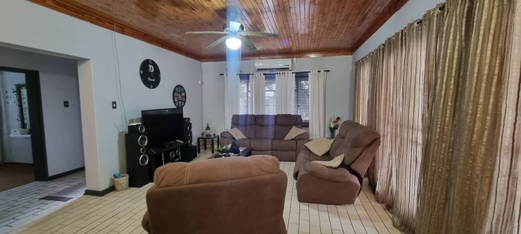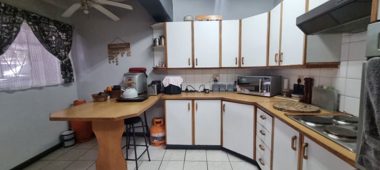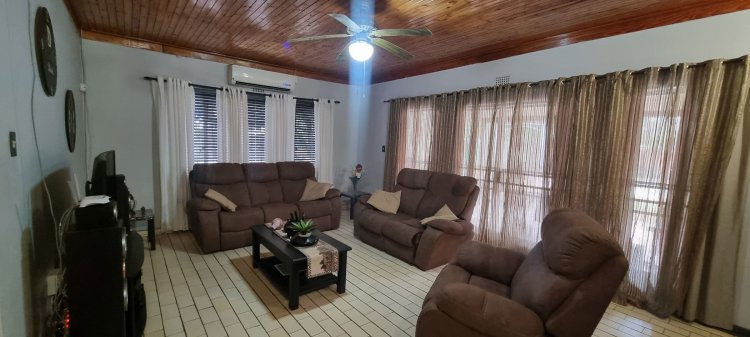 Safety and security are top priorities, with burglar-proofing throughout, an electric fence, and motorized gates providing peace of mind. Additional features include a JoJo water tank with pressure pump, a single garage, and ample undercover parking for up to four vehicles.