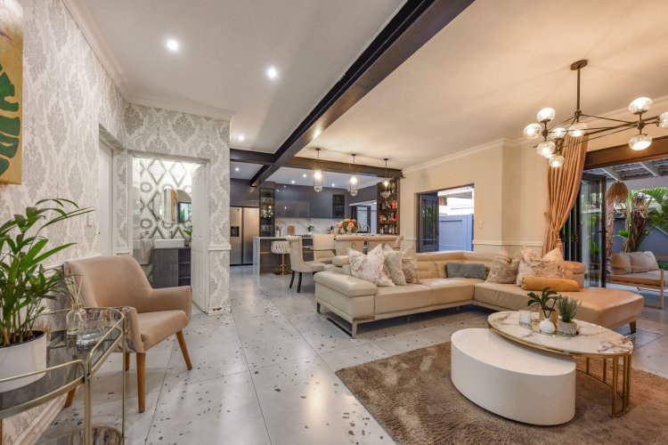 Set in a secure estate, this stunning home boasts an inviting entrance that leads to open plan receptions that flow onto a covered wrap around entertainers patio, sparkling pool and pretty garden.