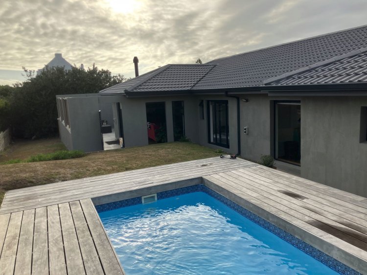 Set on a generous 1 600m² plot with second dwelling rights, this newly renovated home offers exceptional space, flexibility, and long-term potential in sought-after Cape St Francis. The upper level comprises a main en suite bedroom, along with two additional bedrooms that share a full family bathroom, creating a comfortable and practical family layout. Downstairs, the home continues to impress with a private guest suite featuring its own entrance and bathroom, ideal for visitors, extended family, or short-term letting. An additional downstairs room, currently used as a gym/office, offers excellent potential to be converted into a fifth bedroom with en suite, further enhancing the home's versatility. Outdoor living is a standout feature, with a swimming pool, spacious patio, and protected braai area designed for year-round entertaining. Perfectly positioned to take advantage of the surrounding natural beauty, this area creates an inviting setting for relaxed family living and entertaining. A large double garage presents an opportunity to incorporate part of the space into the main house, allowing for expansion into a five- or even six-bedroom home, while still retaining a single garage. The property is further equipped with water tanks, an inverter, and a solar system, offering peace of mind and energy efficiency. With beautiful views over the reserve, the home enjoys privacy, tranquility, and the feeling of a private retreat immersed in nature.