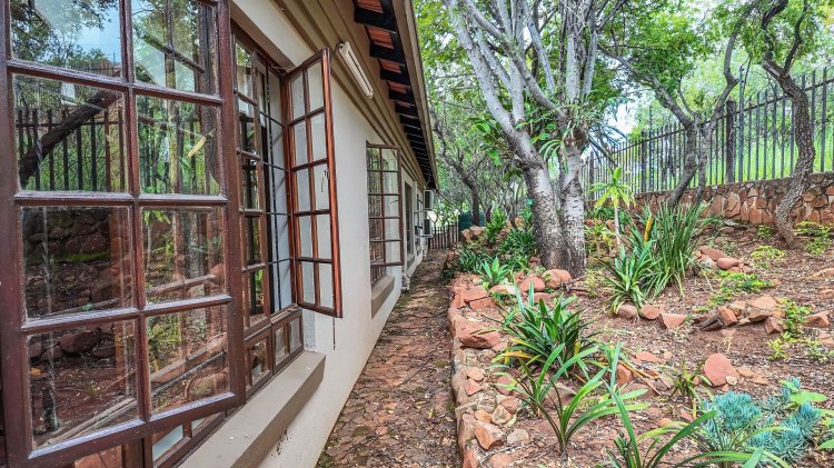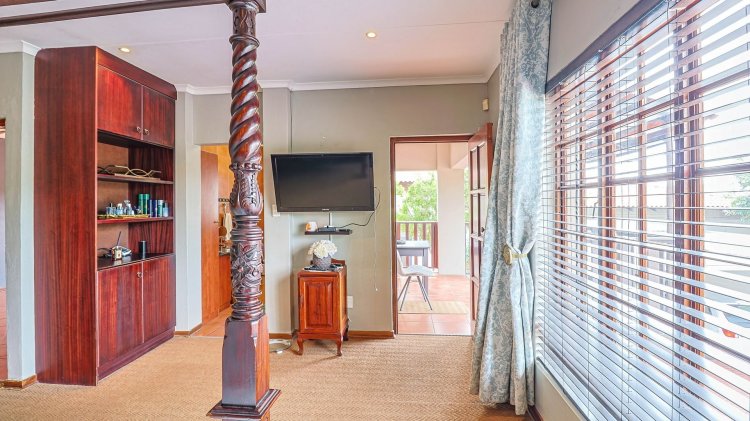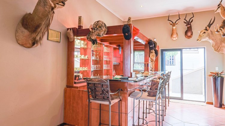 You are welcomed by a striking entrance that flows into an exceptional entertainment area, complete with a built-in bar, built-in braai, and a lounge overlooking a sparkling swimming pool. A short walk leads to a private, enclosed boma—ideal for memorable evenings under the stars.