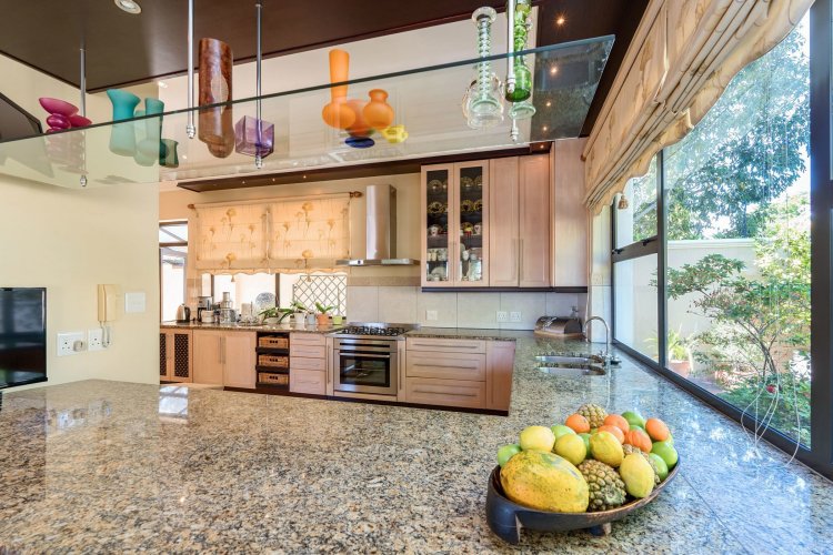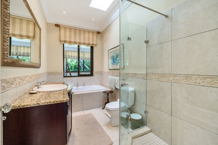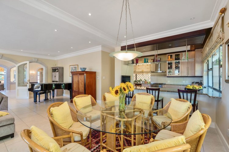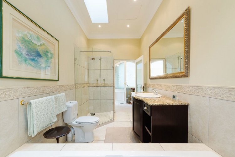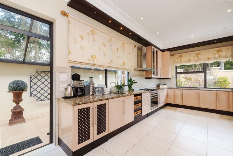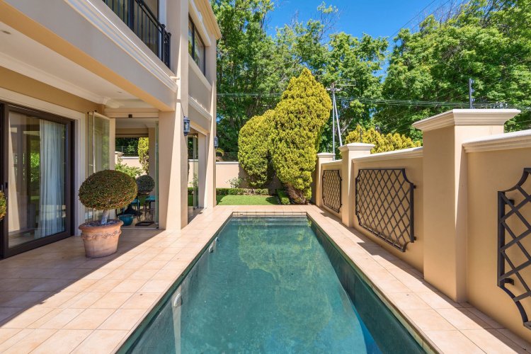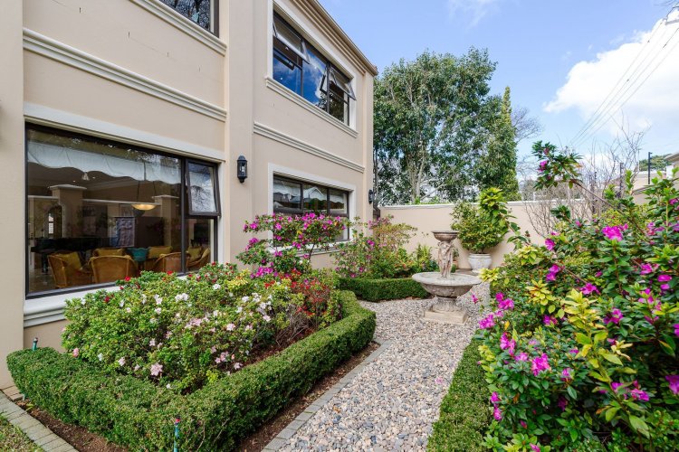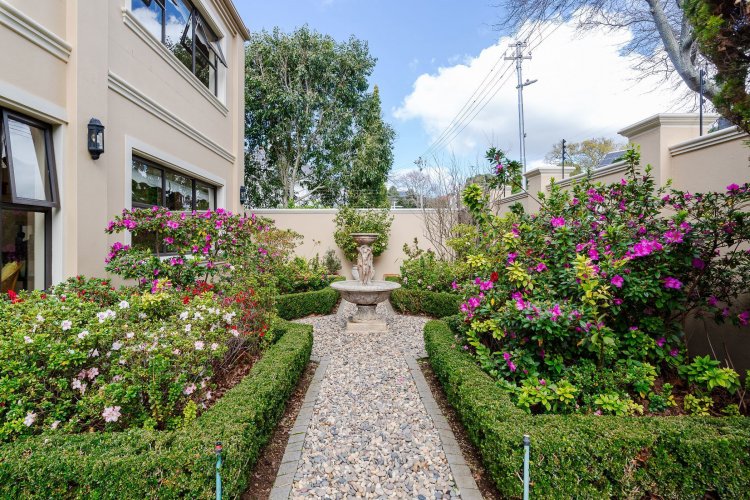 The outdoor space has been extended to include a generous garden, perfect for enjoying the surroundings, & is serviced by a borehole for irrigation. A kitchen courtyard garden, outdoor shower, WC for garden staff, & a back-gate entrance add to the practicality. Additional off-street parking is also available, enhancing the home's convenience & functionality.