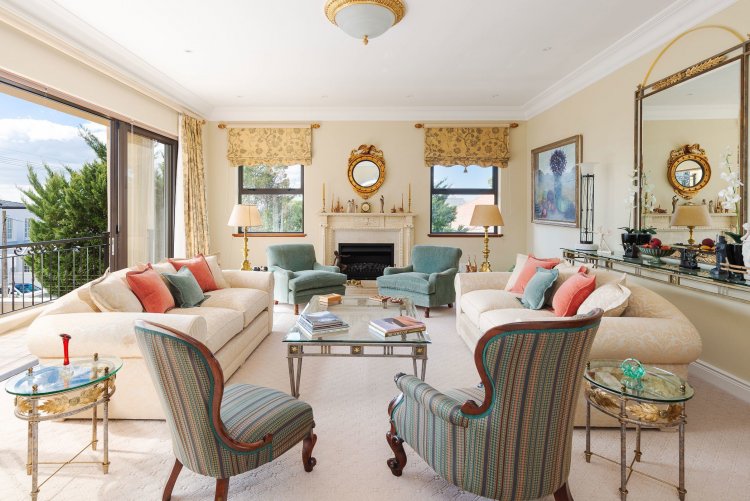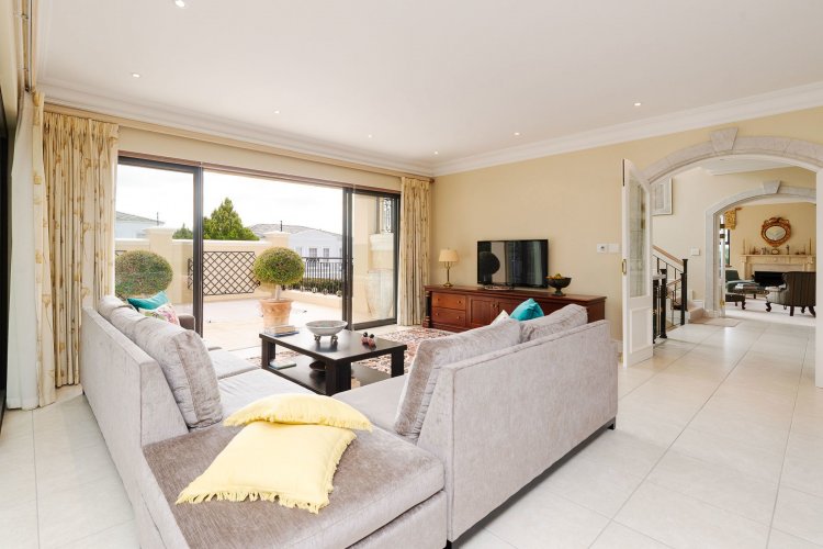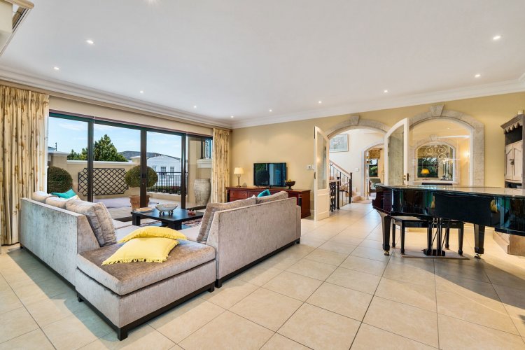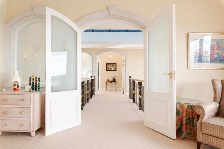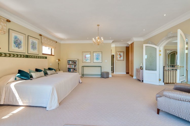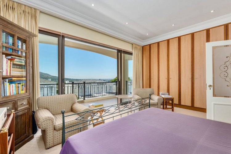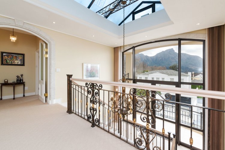 Upstairs, the double-volume landing leads to a private balcony & further showcases the home's impressive natural light & views. The master suite includes its own balcony, a walk-in his & her's dressing room, & a luxurious ensuite bathroom complete with dual basins, a large bath, & a shower. Additional upstairs spaces include a third bedroom with balcony access & mountain views, a lounge or study that can serve as an extra bedroom, & an art studio/ pyjama lounge or gym area. A family bathroom complete with shower & bath serve the 2 upstairs rooms.